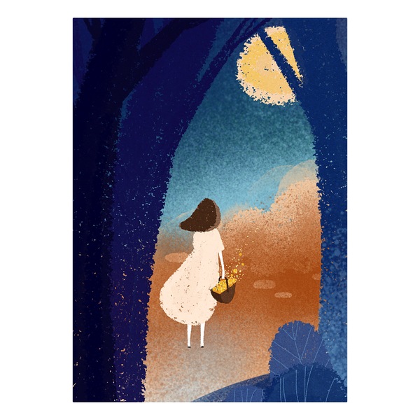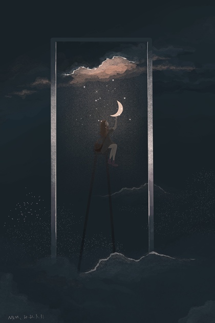 PS插画-抱着月亮的男孩