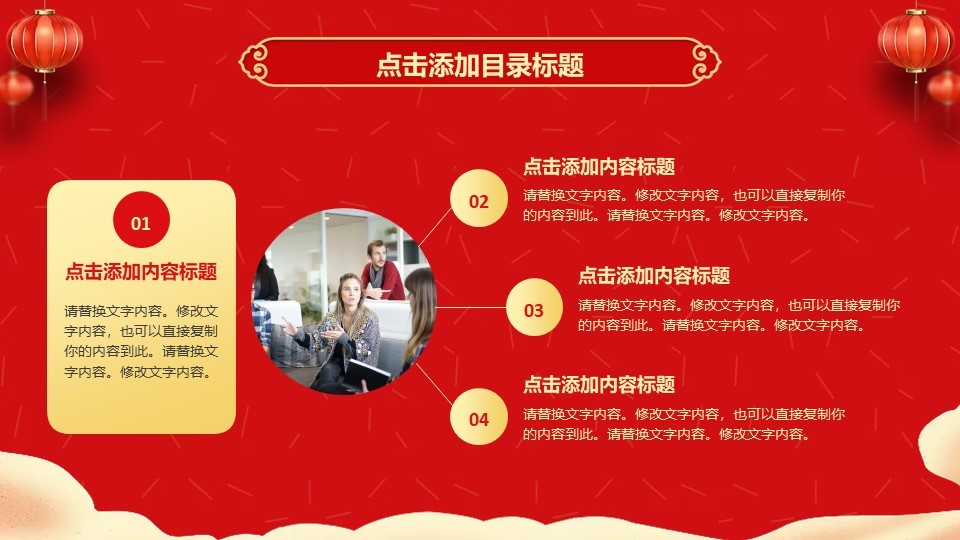 红色中国风除夕夜团团圆圆过大年PPT模板