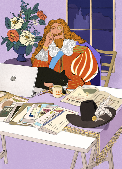 线条风插画,读书