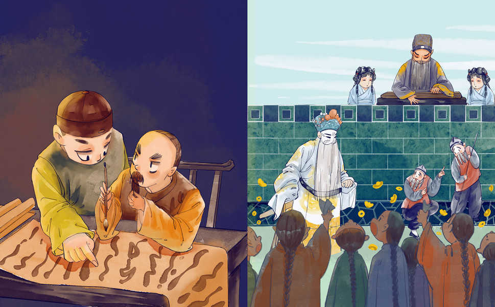 中小学名著分级阅读历史类上下五千年彩色水墨儿童插画