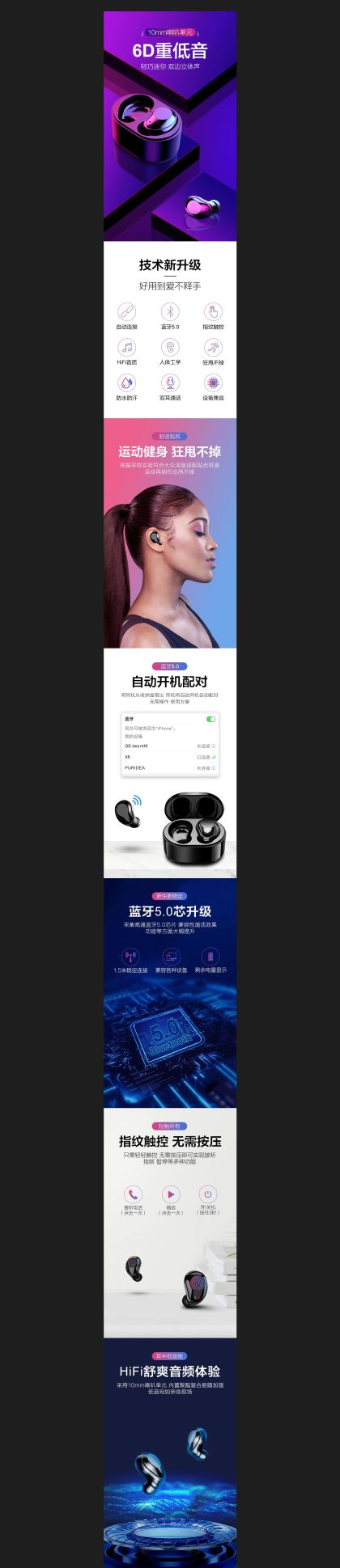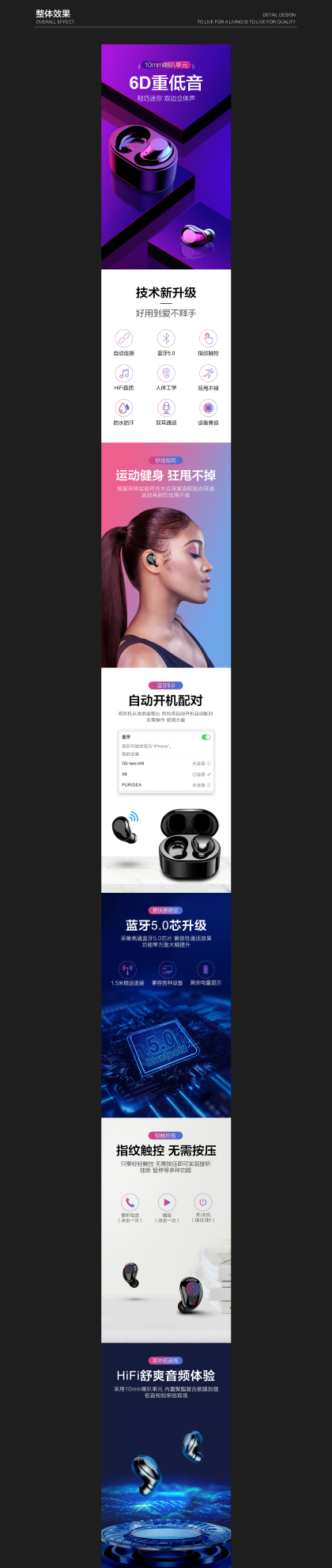 2019年天猫5D蓝牙耳机详情描述页面设计