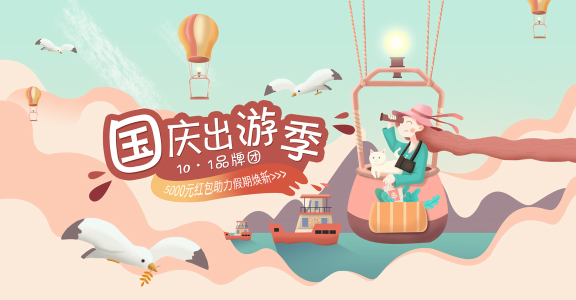 淘宝首页装修/专题活动/电商页面/国庆手绘海报