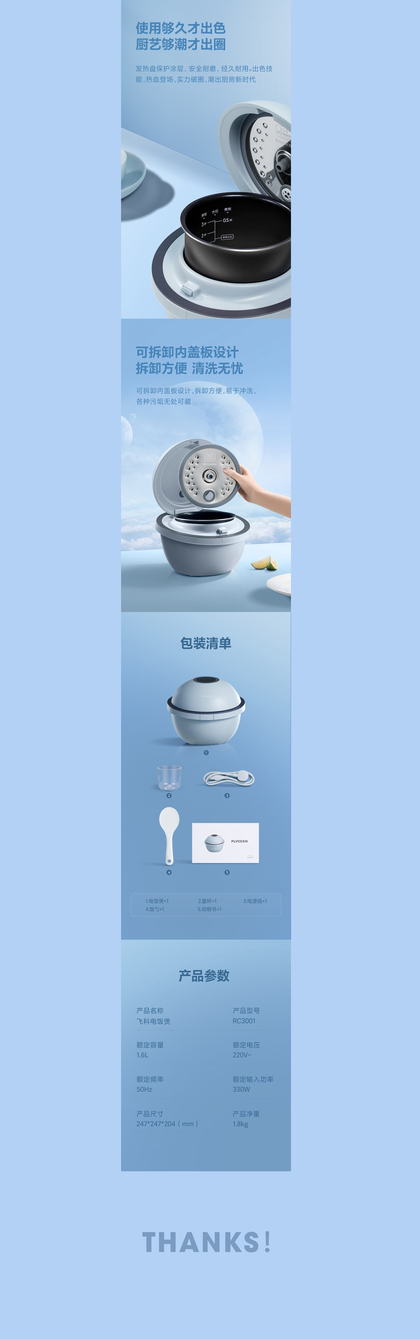 飞科电饭煲详情页分享|三维渲染|飞科xMAX