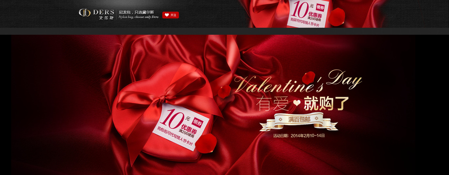 情人节首页海报设计 2月14日淘宝天猫商城页面网店设计 有爱就购了!