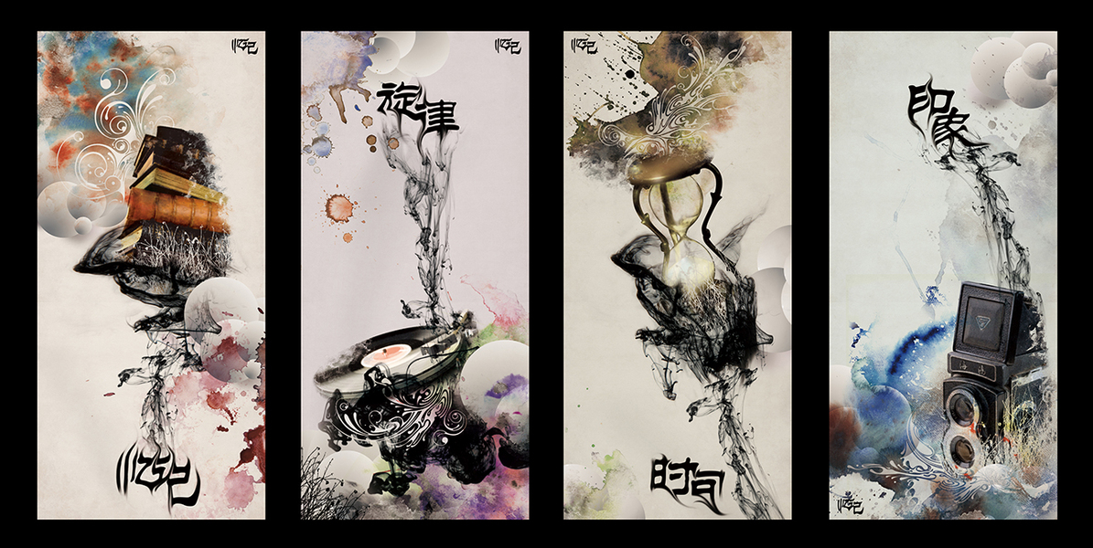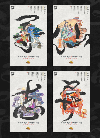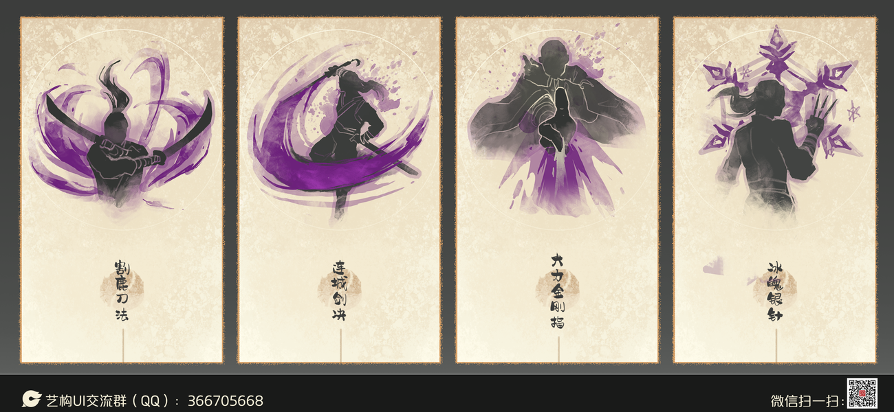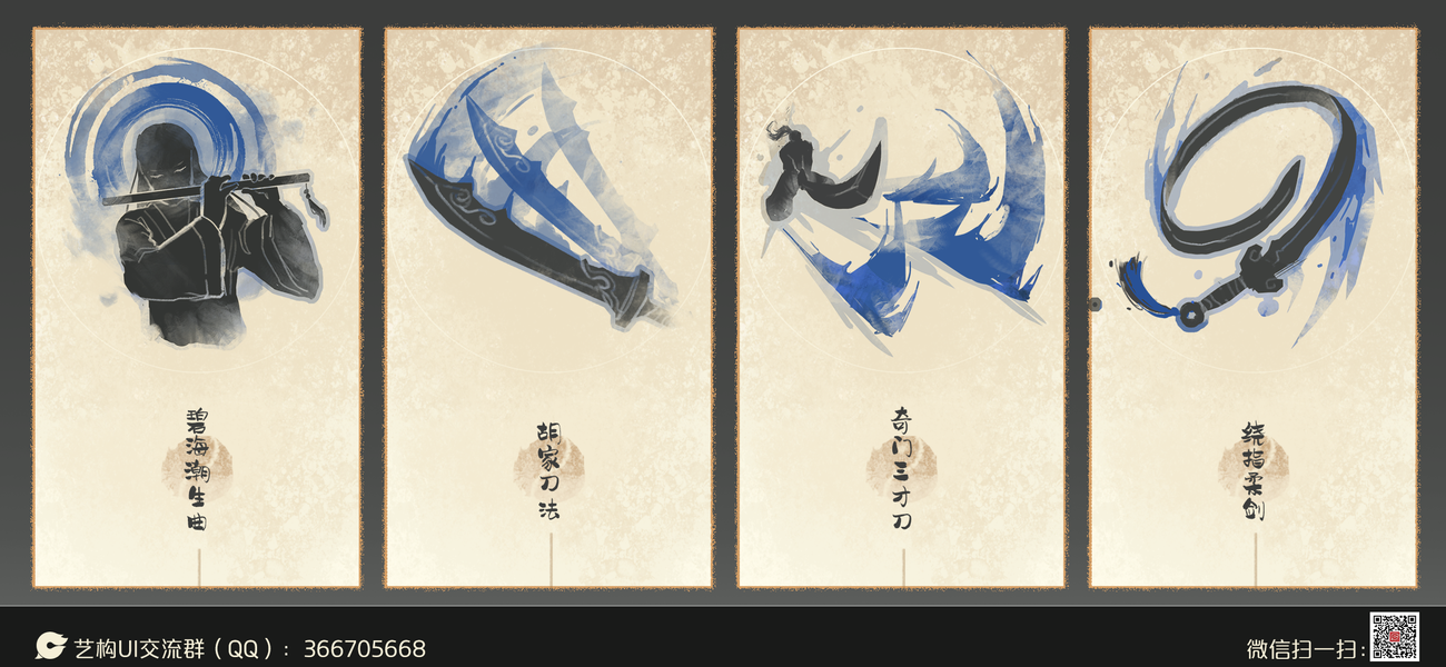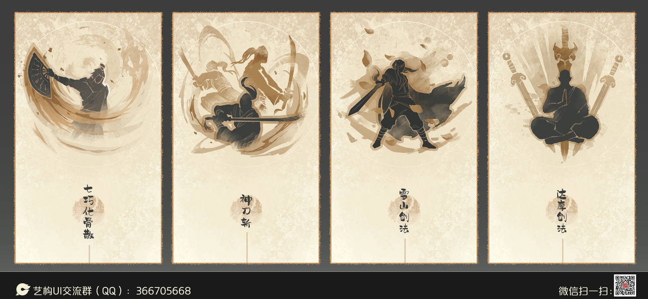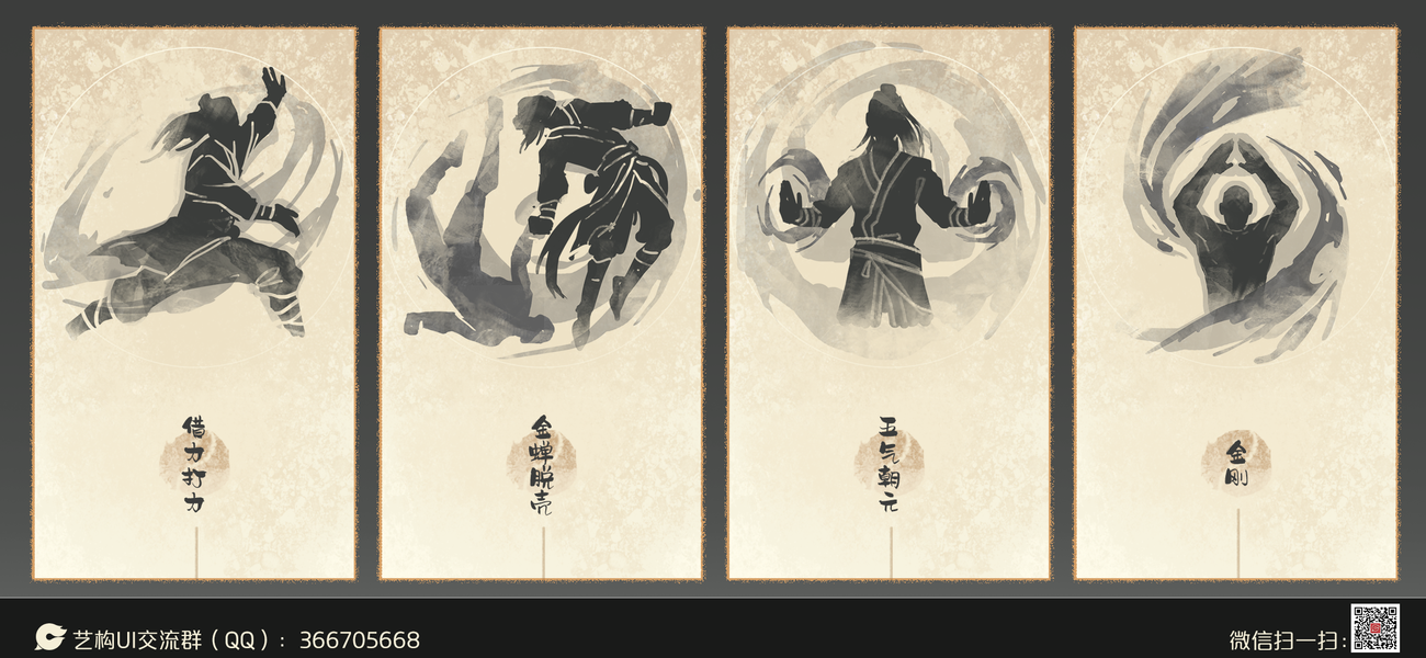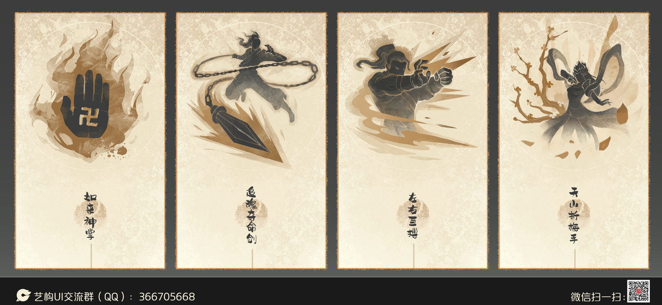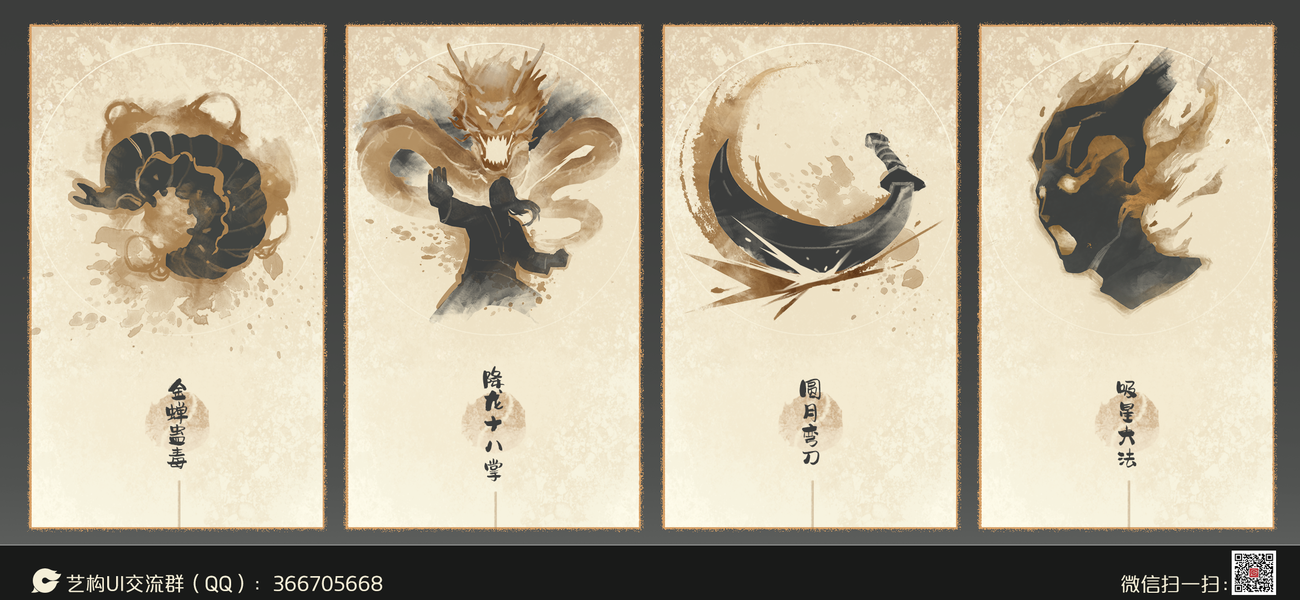 一组水墨武侠风神功招式牌面 | 艺构网络