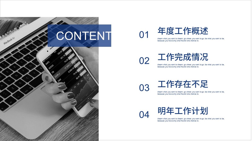 时尚蓝色逐梦前行商务工作总结计划PPT模板