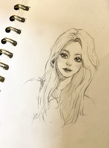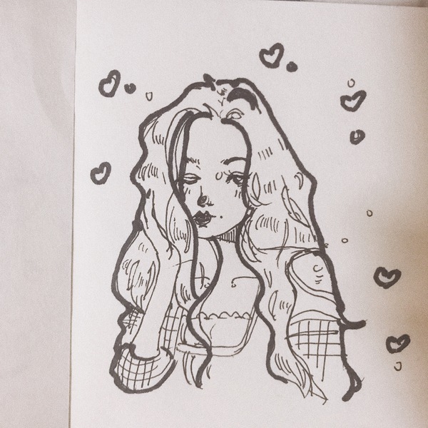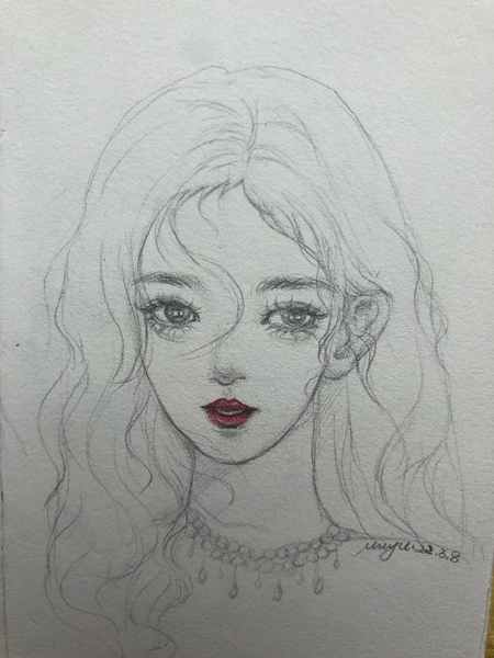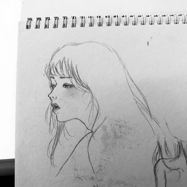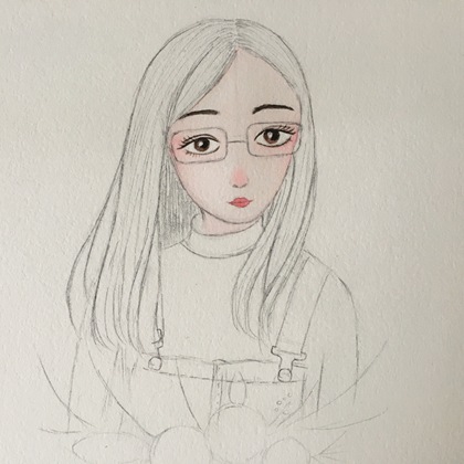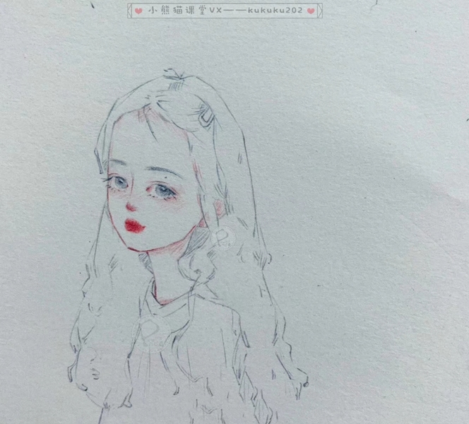 水彩线稿卡通手绘少女插画性感可爱彩铅头像壁纸