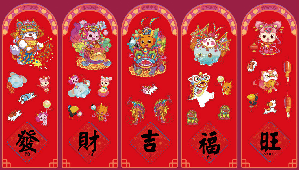 春联贴纸小龙IP卡通形象吉祥物龙设计