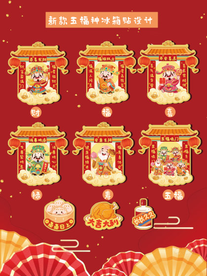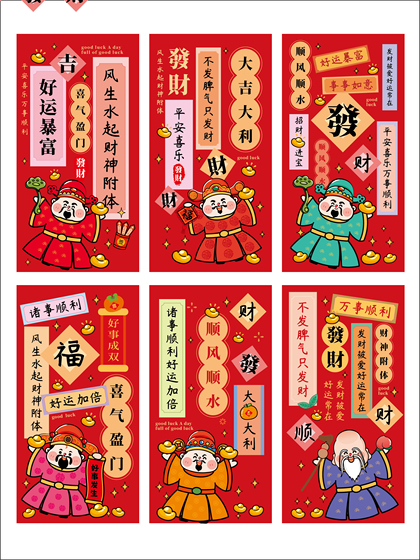 财神插画红包新年利是封贴纸手机壁纸卡通新年