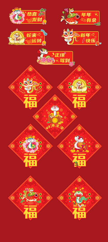 原创蛇年插画蛇年新款新年喜庆小挂件插画设计