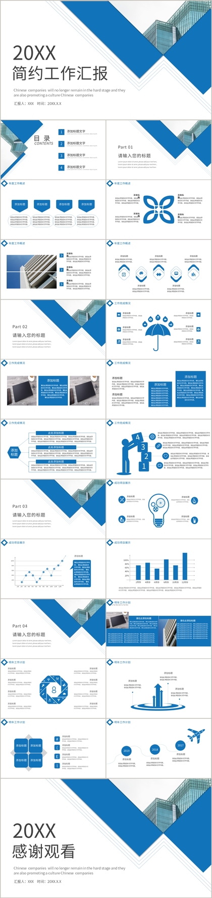 清晰简洁蓝色系公司企业年度工作总结汇报PPT模板
