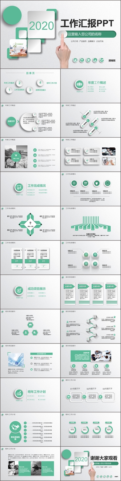 绿色时尚商务工作汇报述职报告路演PPT模板