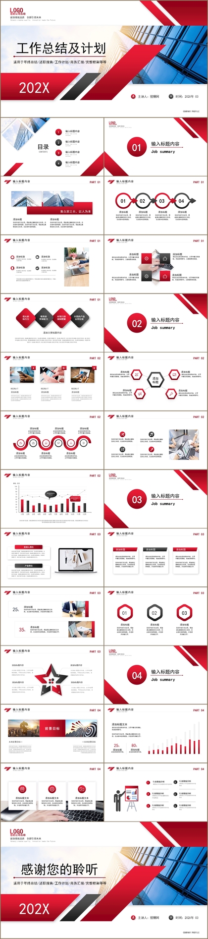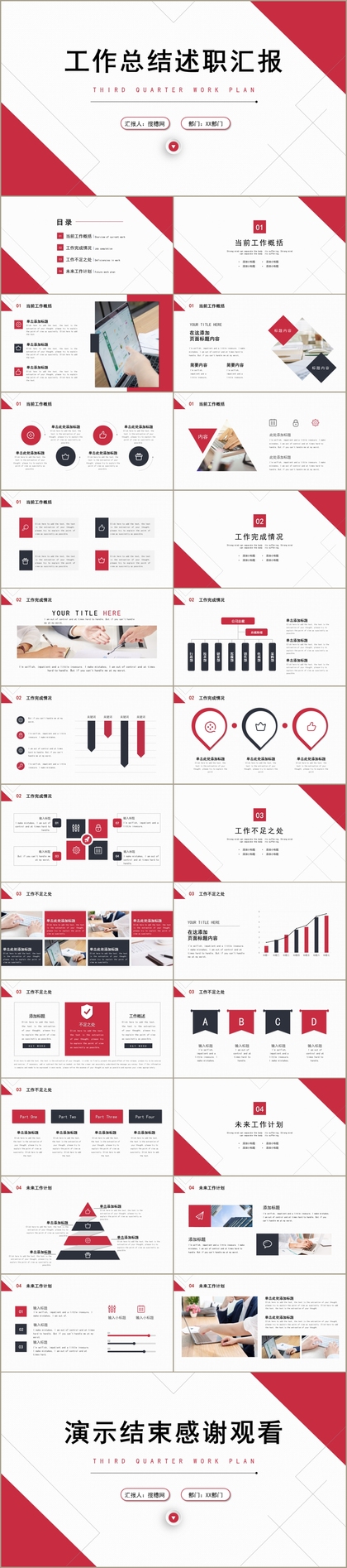时尚红色商务企业工作总结述职报告演示PPT模板