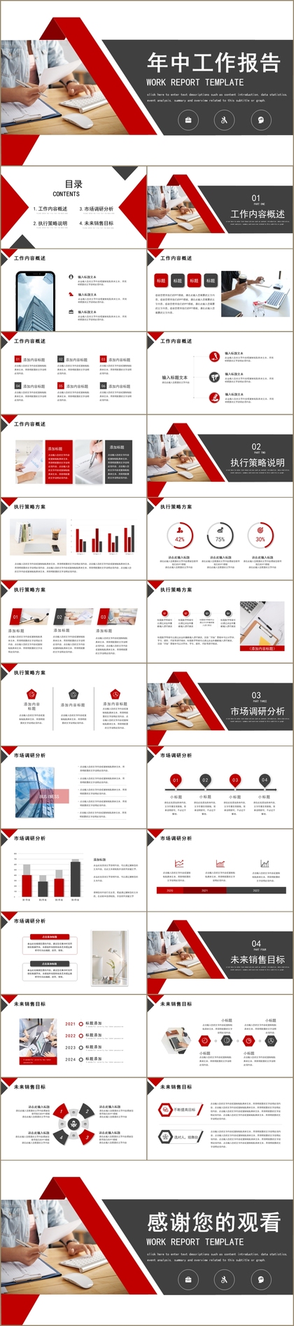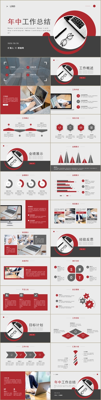 高端稳重红色大气商务年中工作总结汇报PPT模板