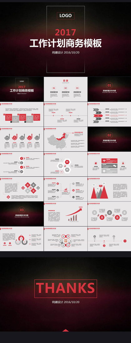 红色扁平化简约商务企业部门工作计划总结汇报PPT模板