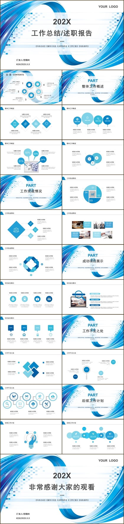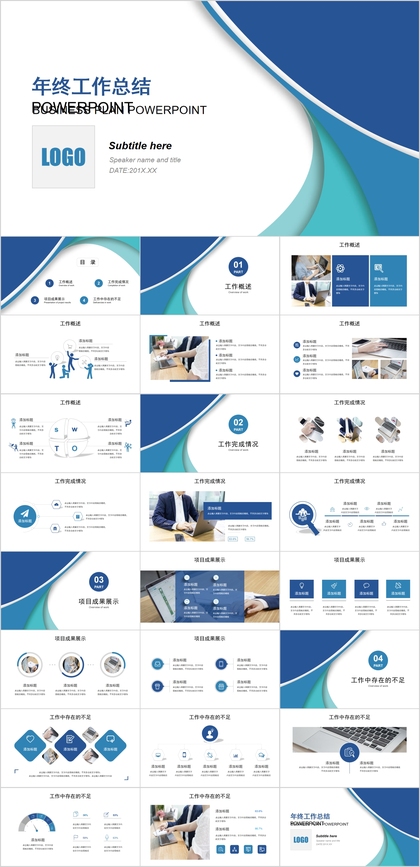 蓝色清晰简约风商务企业工作总结会议报告PPT模板
