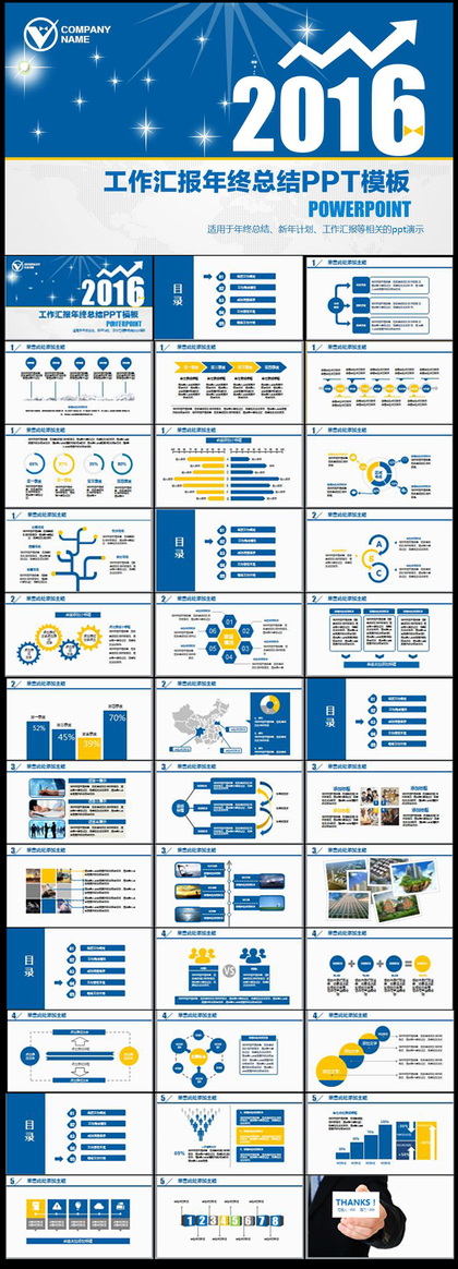 蓝色大气通用企业工作报告PPT模板 企业年终总结 公司新年汇报 猴年 2016 计划总结