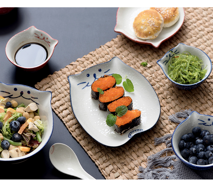 日式招财猫碗盘陶瓷餐具家用饭碗盘子可爱碗碟套装摄影
