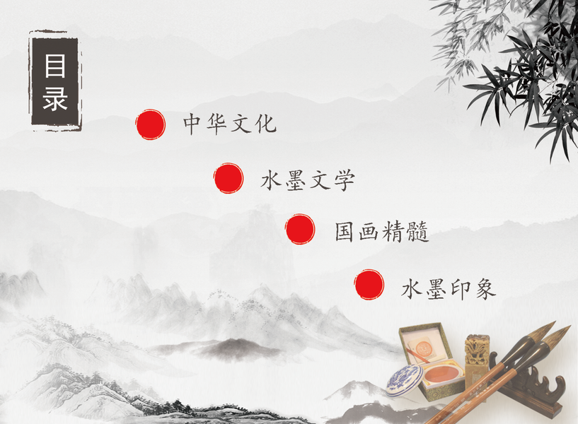 中国风淡雅水墨教师教学说课教育培训PPT模板