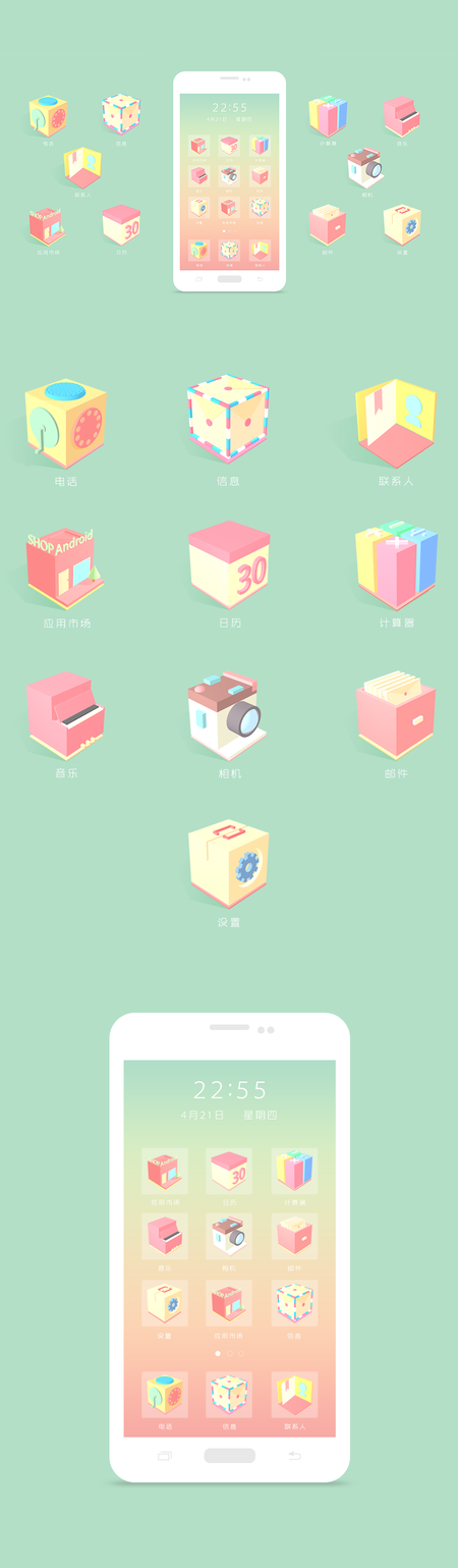 安卓图标、主题设计—《进击的方块》