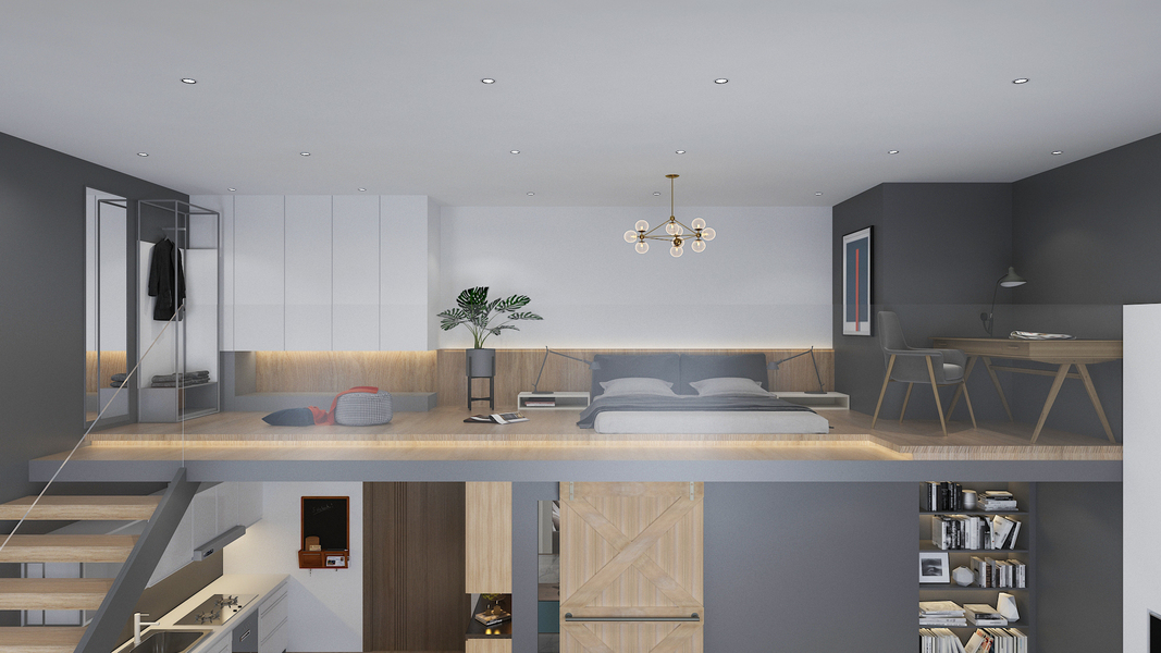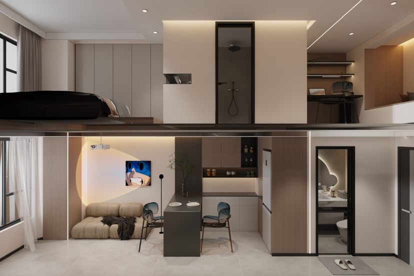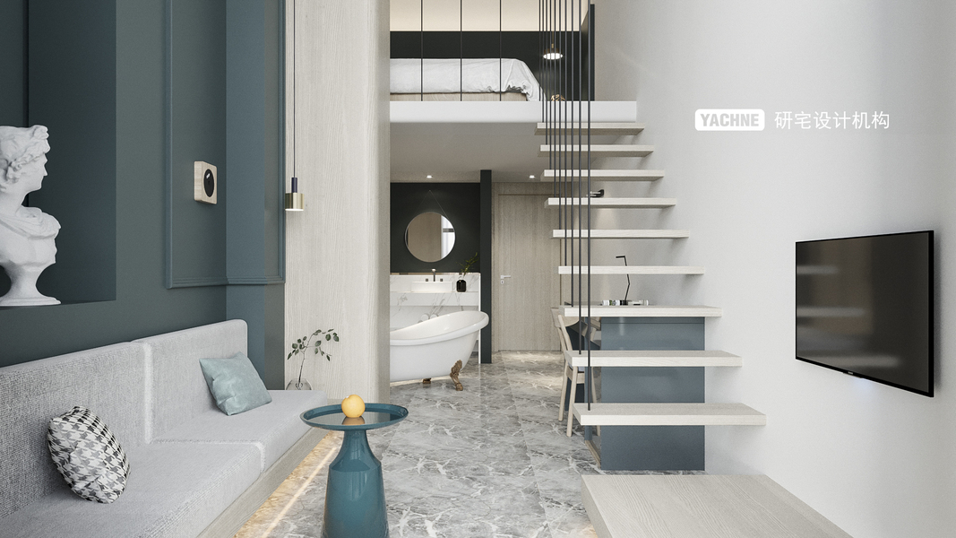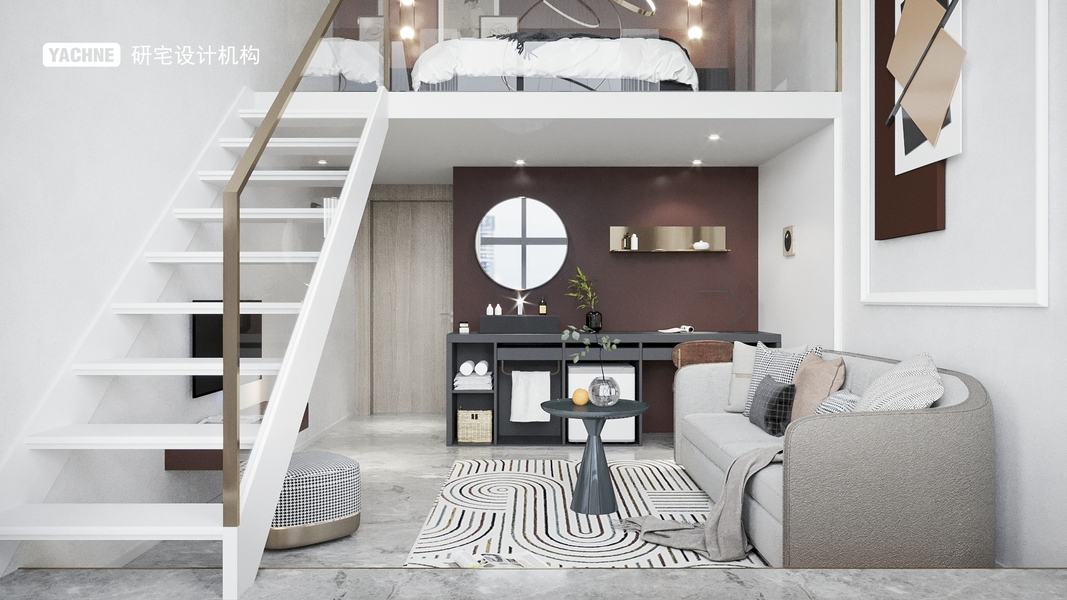 极简灰调系复式单身公寓