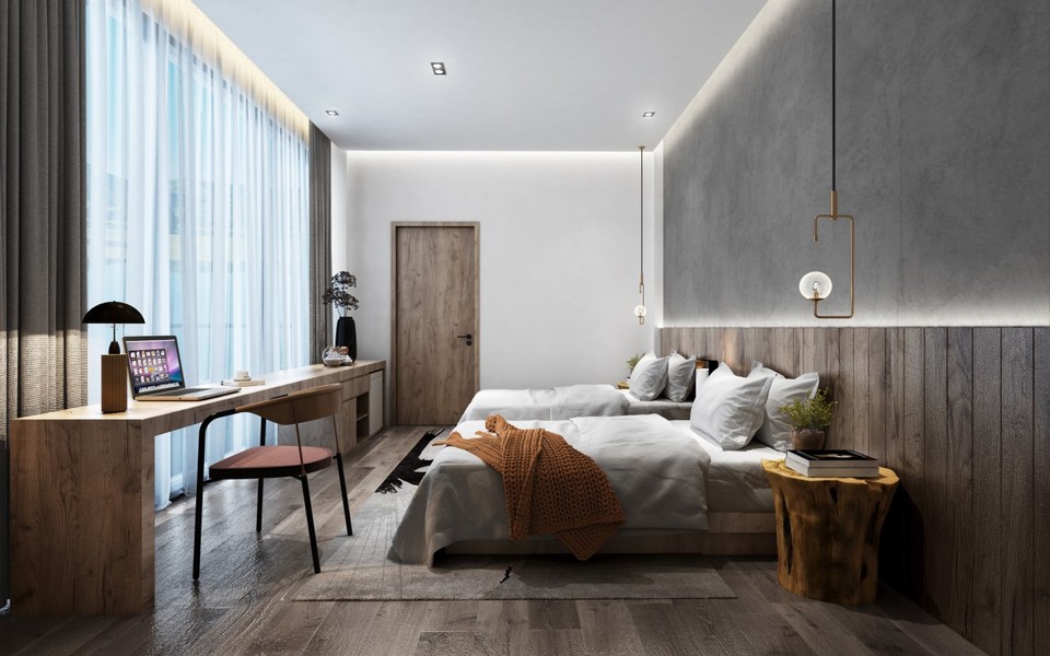 SU+Enscape酒店客房设计渲染