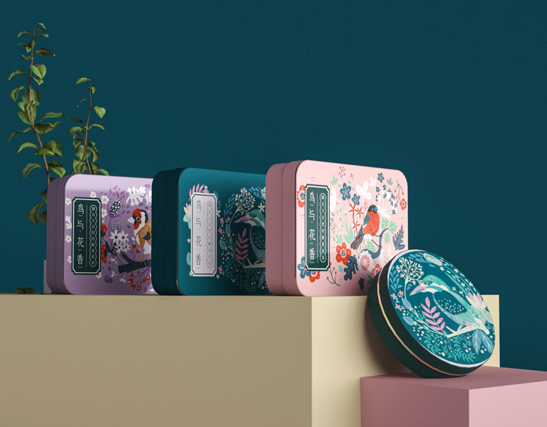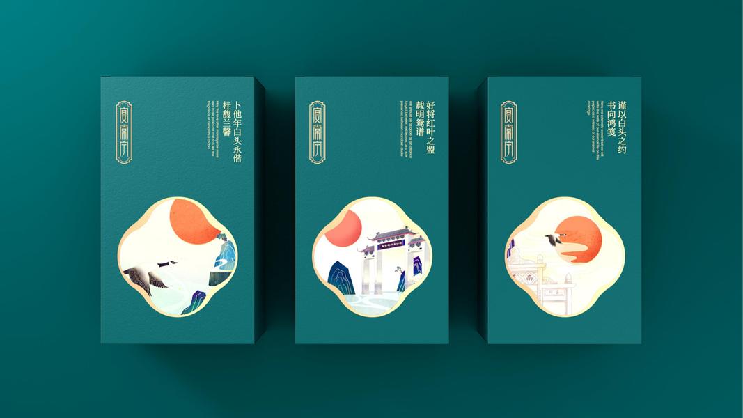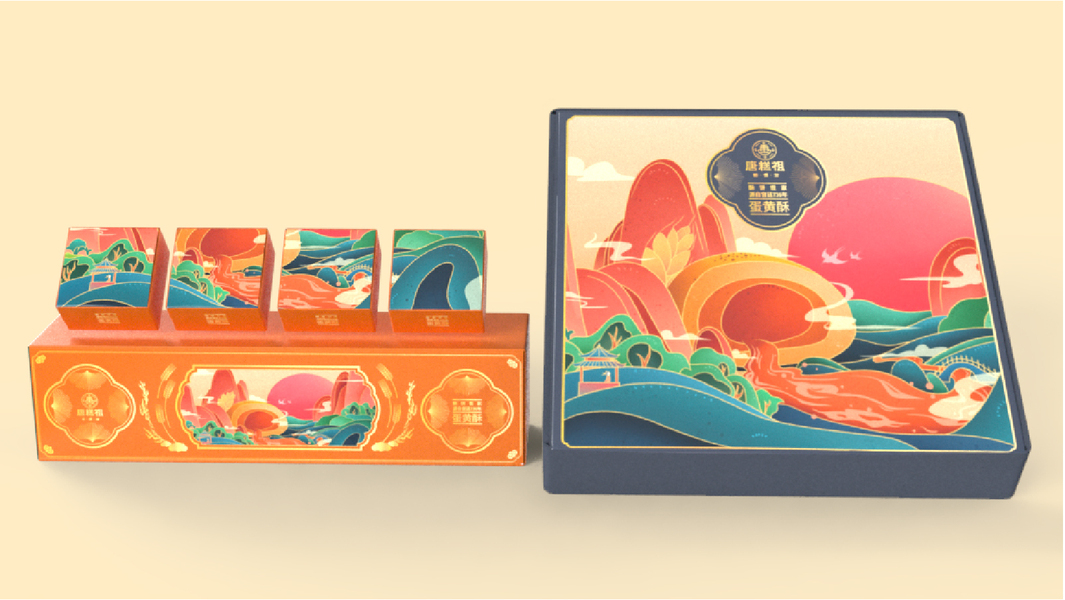 中秋月饼-节日礼盒-国潮风-商业插画礼盒包装