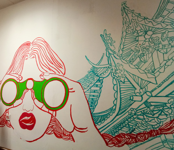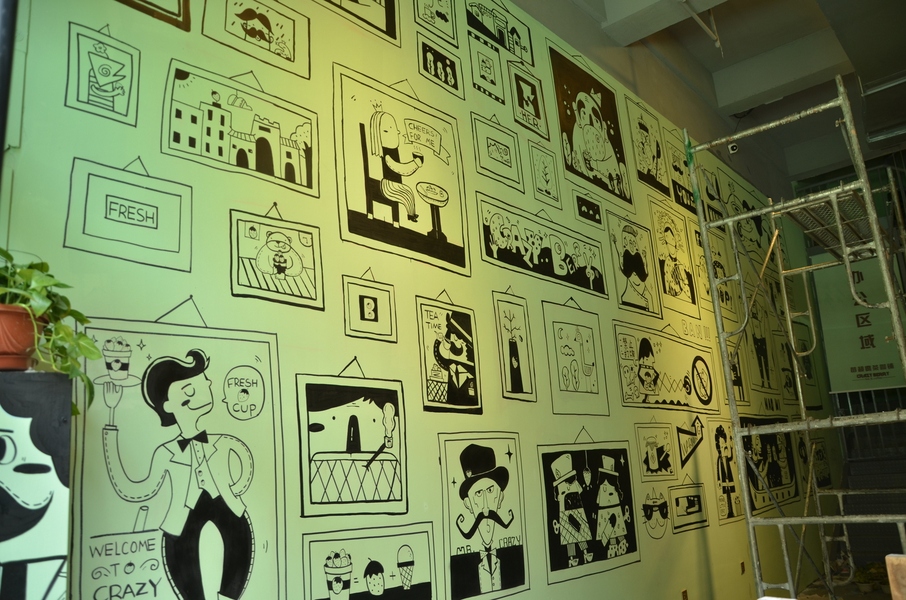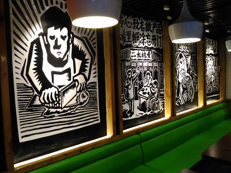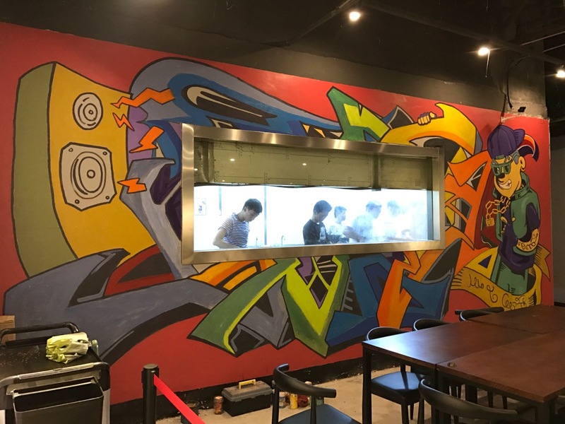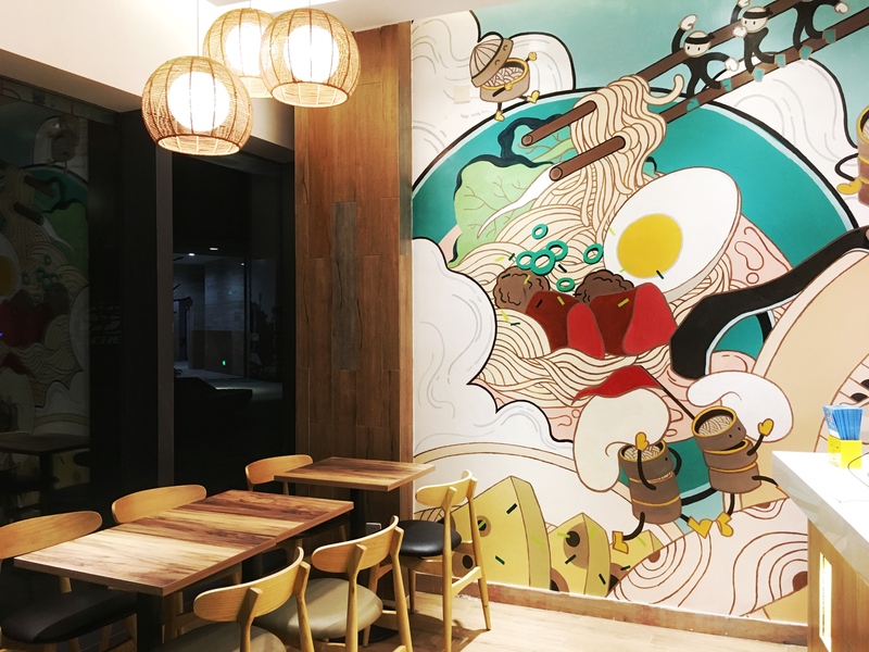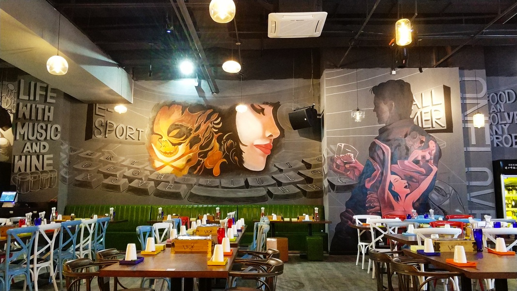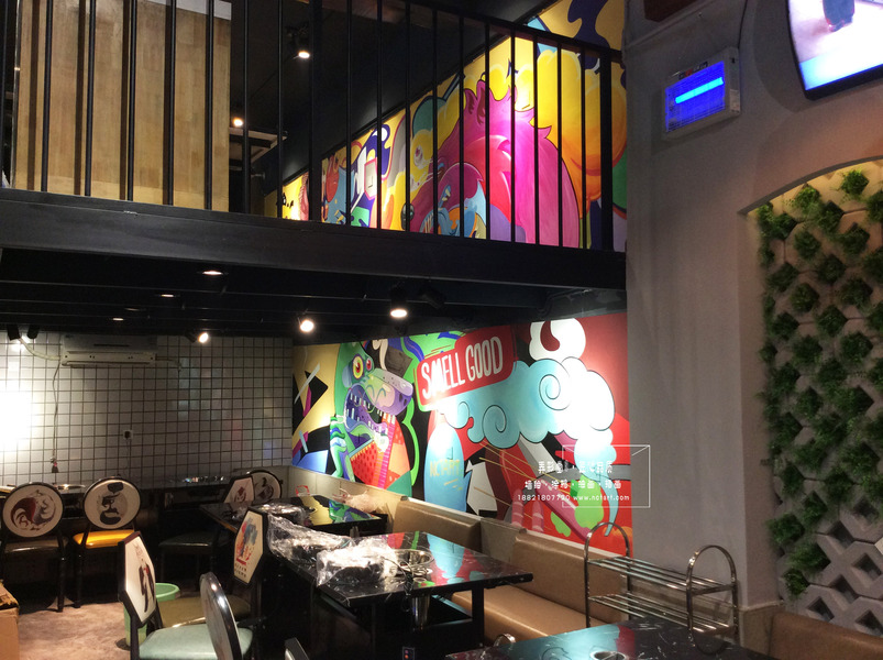 颜料堆积的樱桃嘴 一家火锅店的墙绘