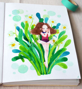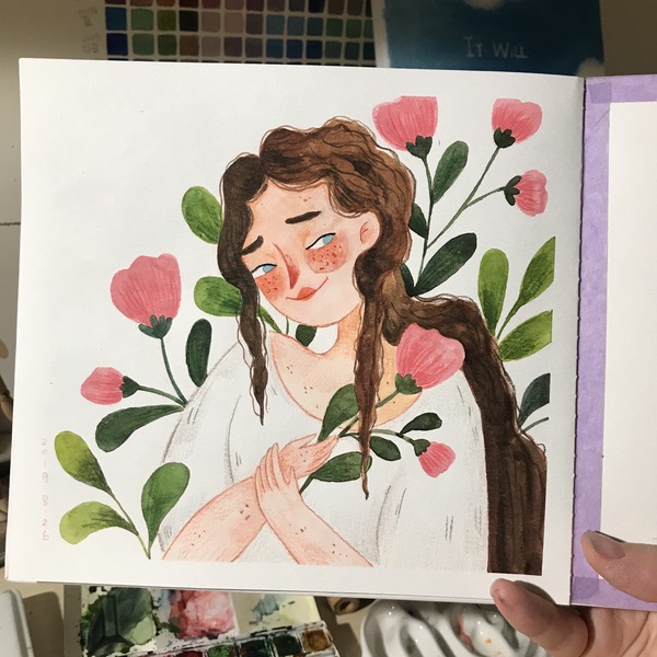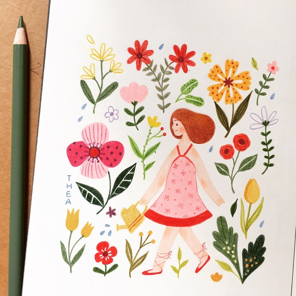 作 品:《春天里的少女》水彩插画练习