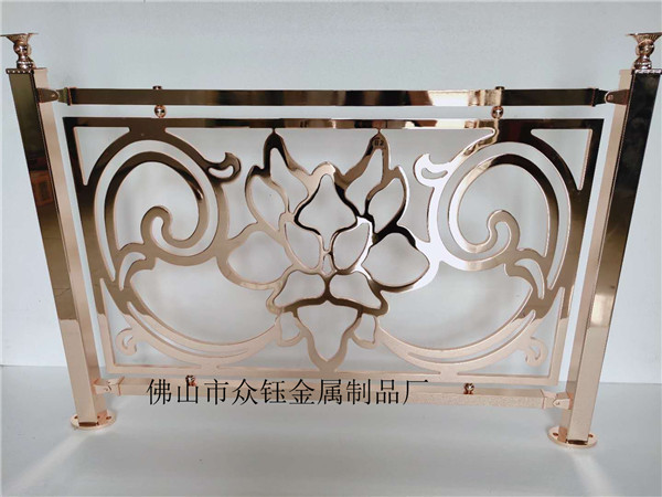 你见过这种铝板雕刻镀金楼梯护栏吗? 玫瑰金_镂空