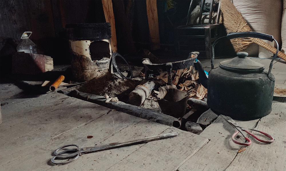 一古村落,一老人、一间屋、安静且专注的在做陶器