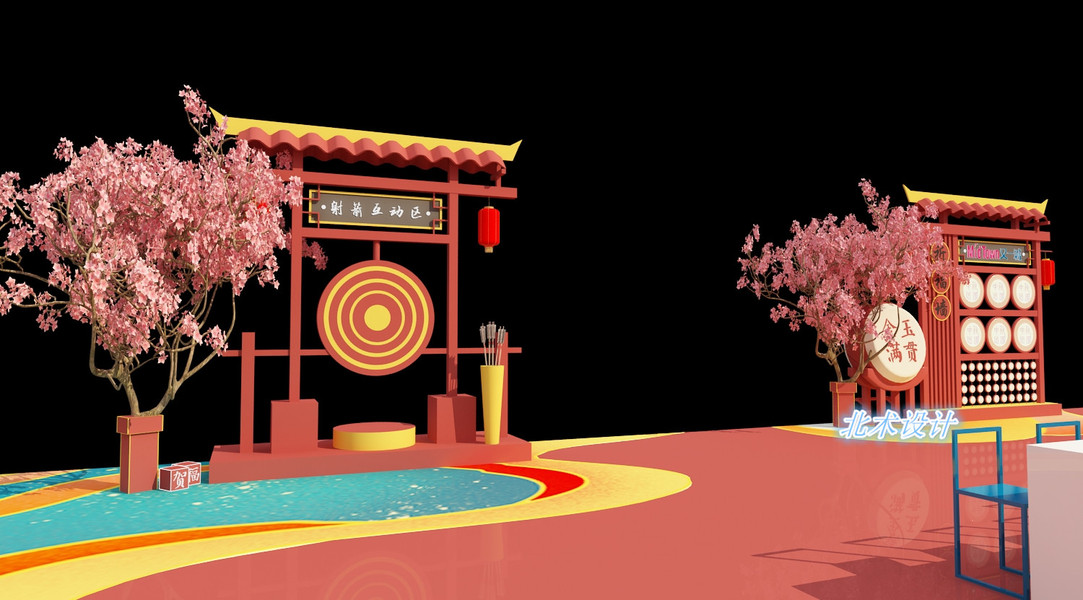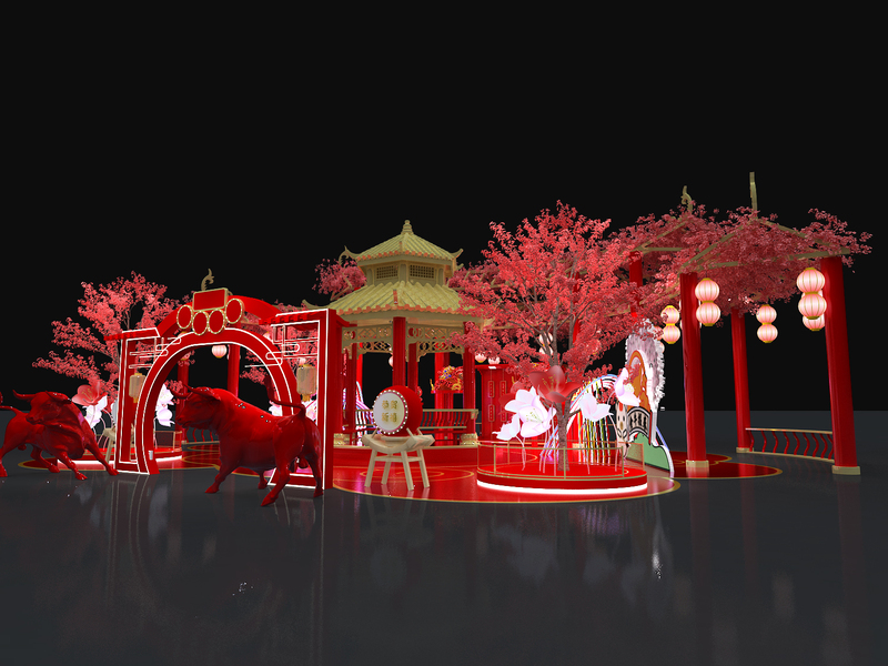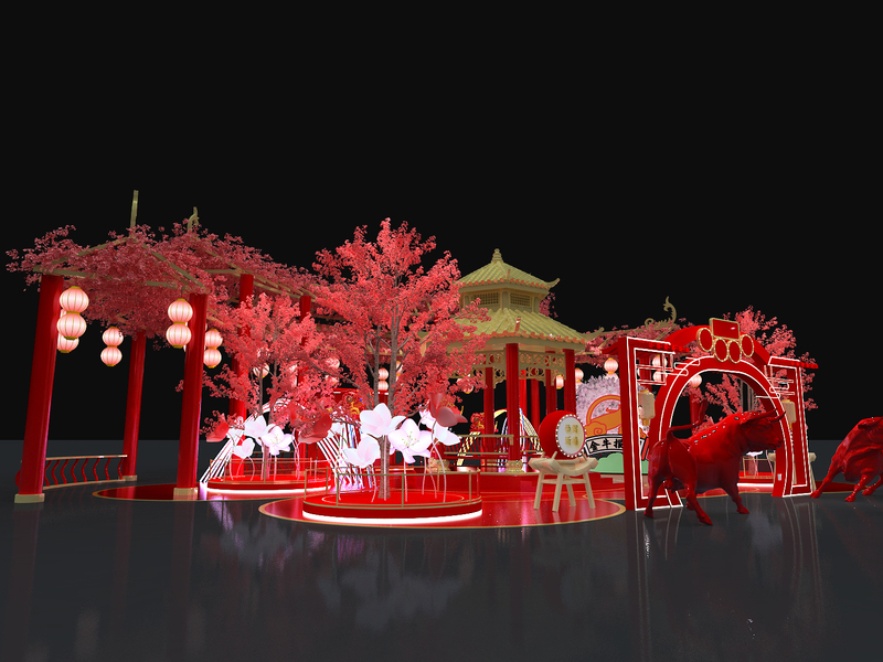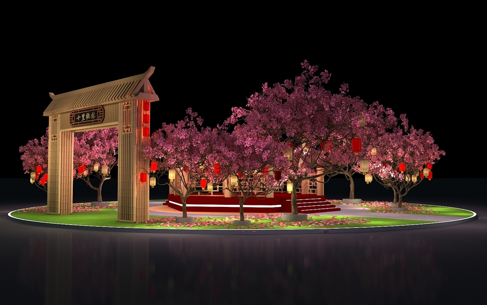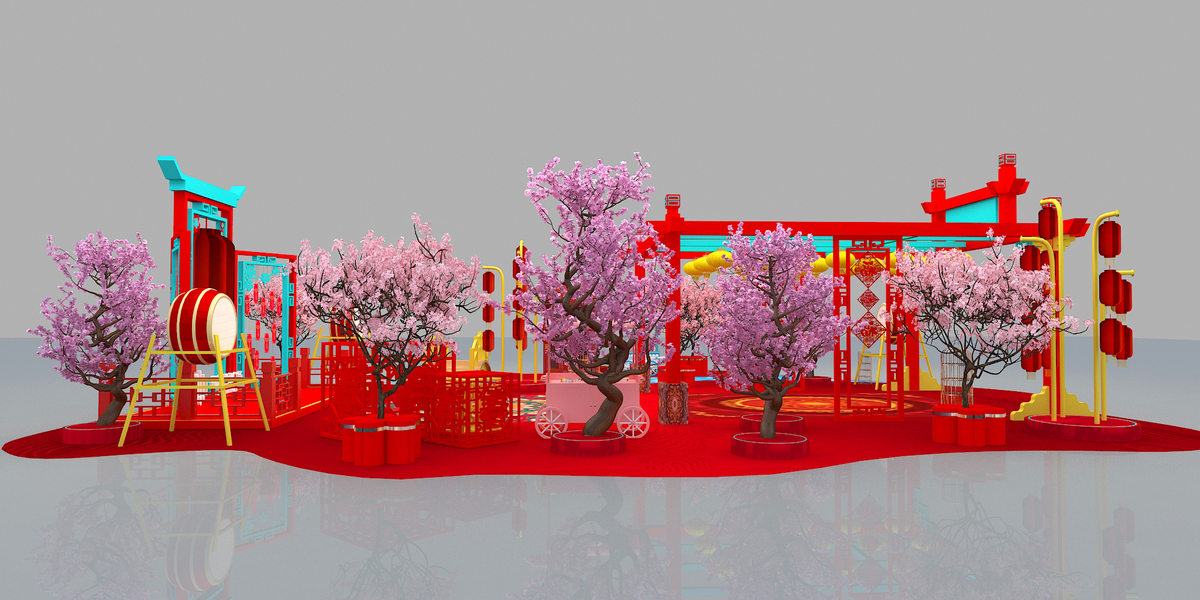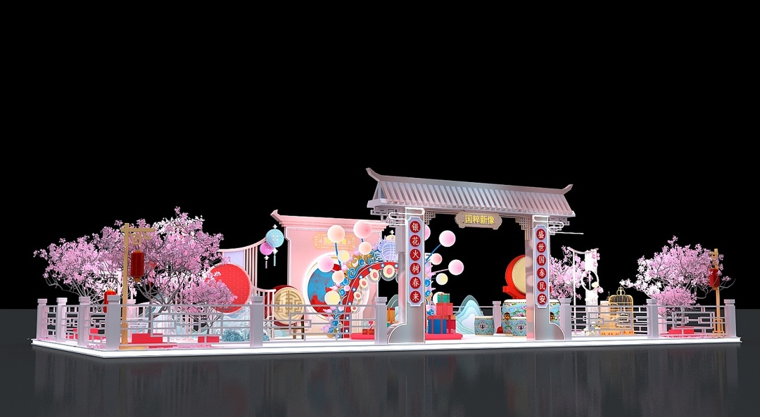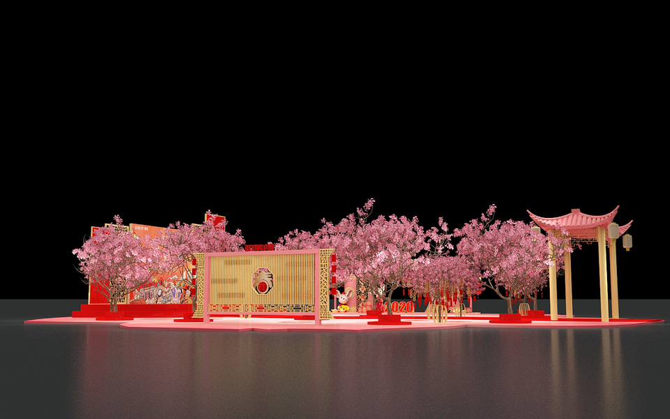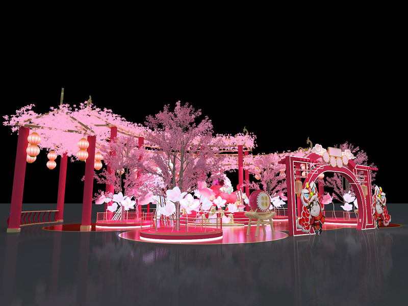 商场中庭樱花造景美陈网红打卡点3d效果图设计制作