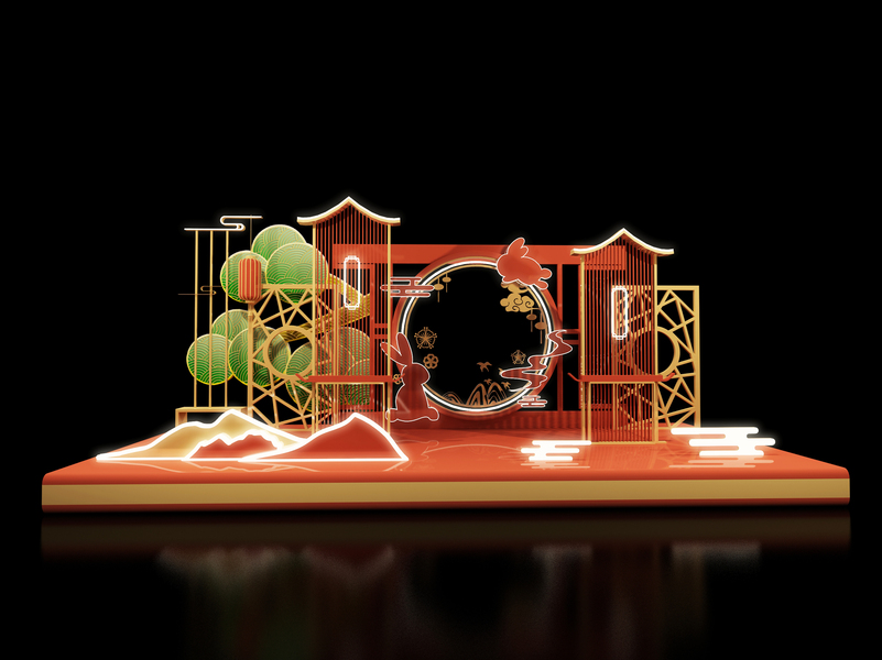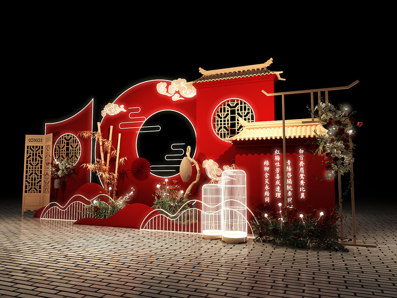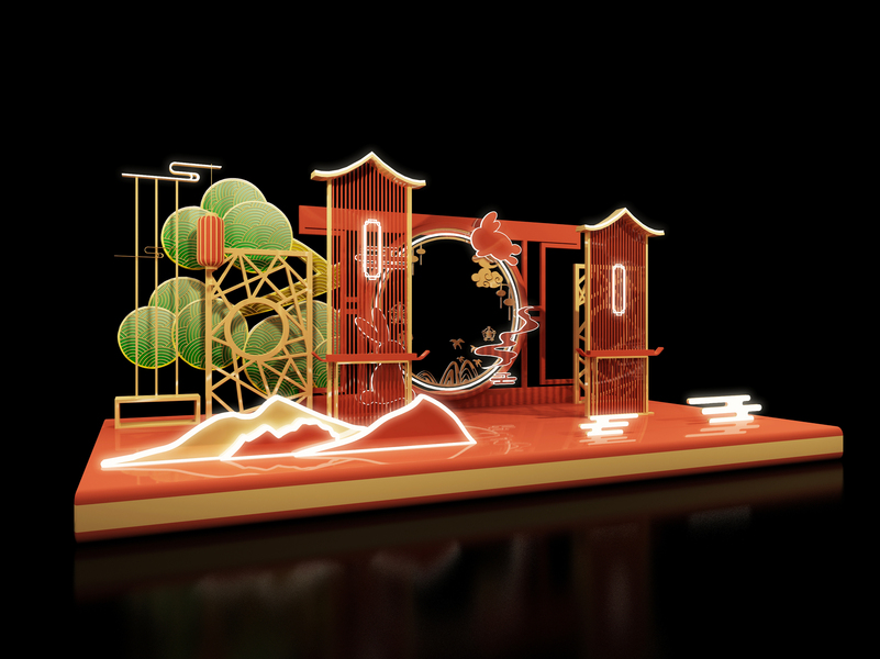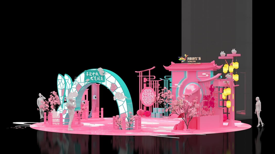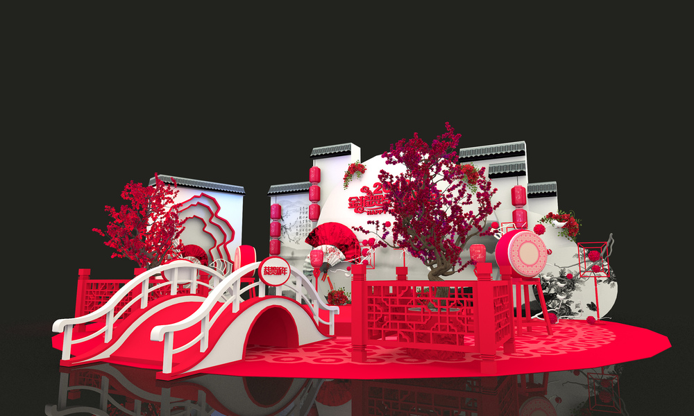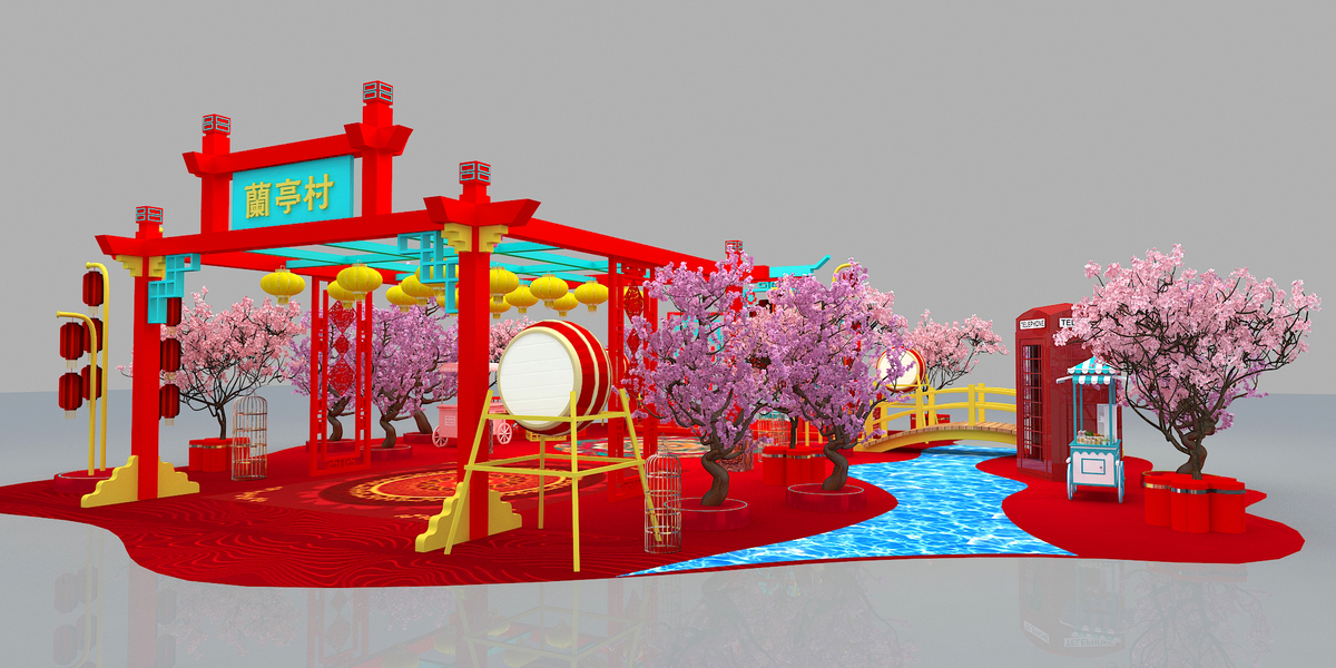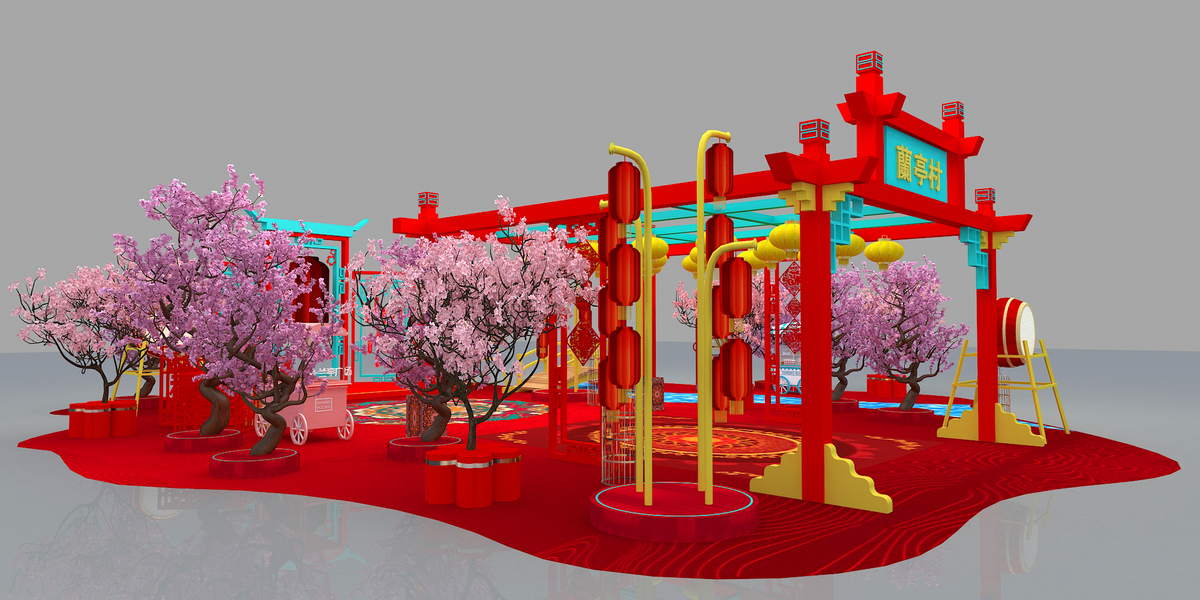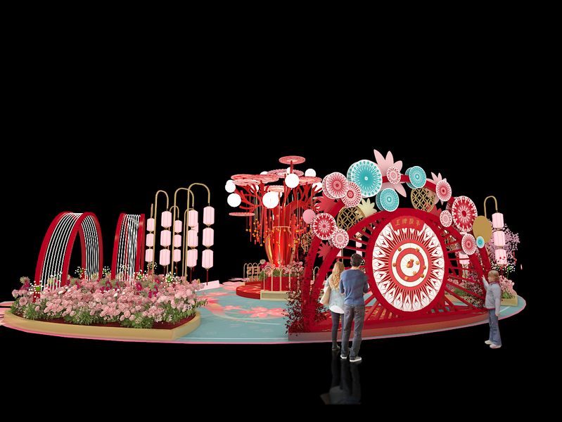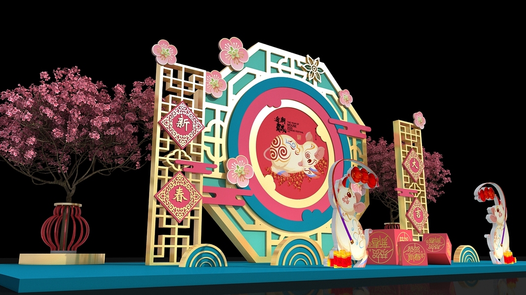 商场中庭樱花造景美陈网红打卡点3d效果图设计制作