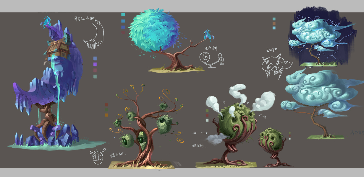 游戏场景 植被设计 配色 树 结婚浪漫食人花 地台 原画