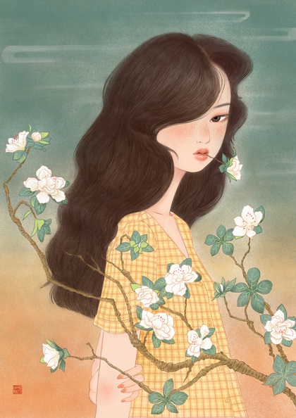 水彩插画《花语》系类 场景 少女 花卉