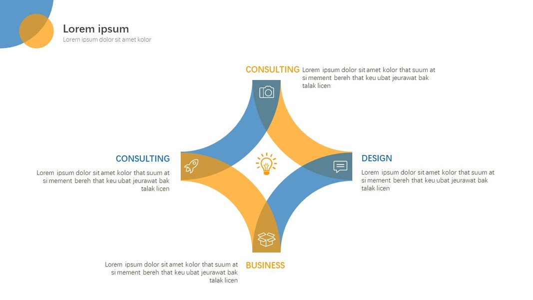 四色环形装饰动态商务汇报PPT模版