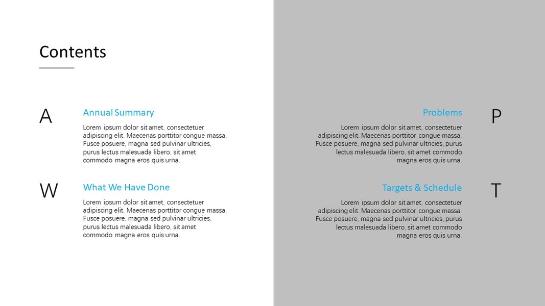 蓝青灰黄四色素雅商务风动态PPT模版