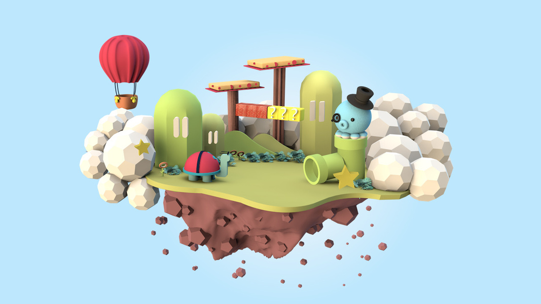 楷楷王子、月月兔、可可拉等蘑菇屋春天小场景建模动画