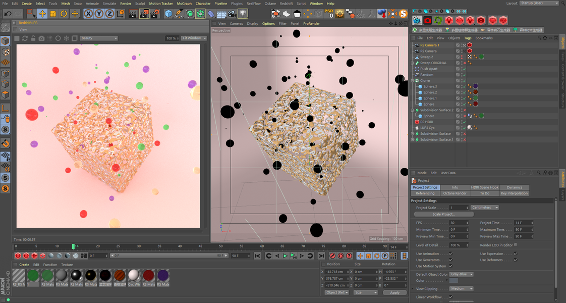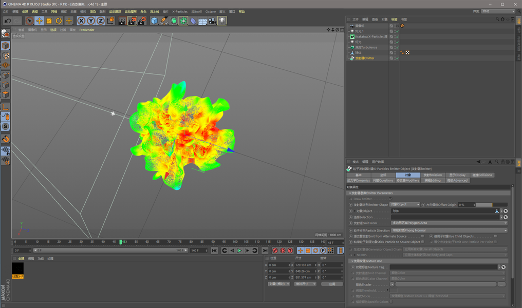 C4D X-particles+KK渲染器渲染粒子散开效果