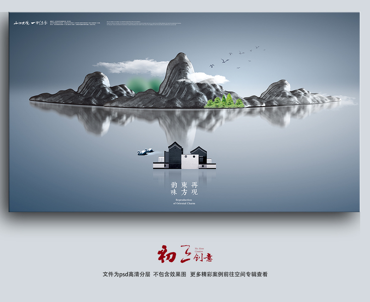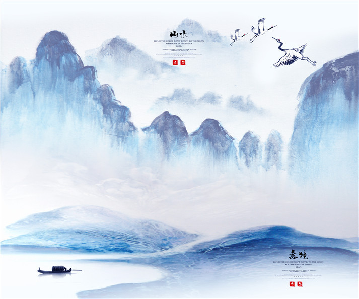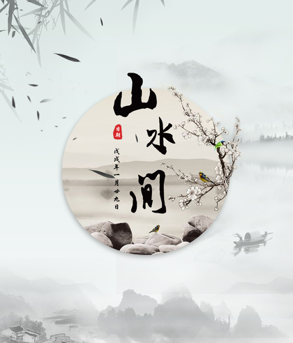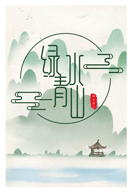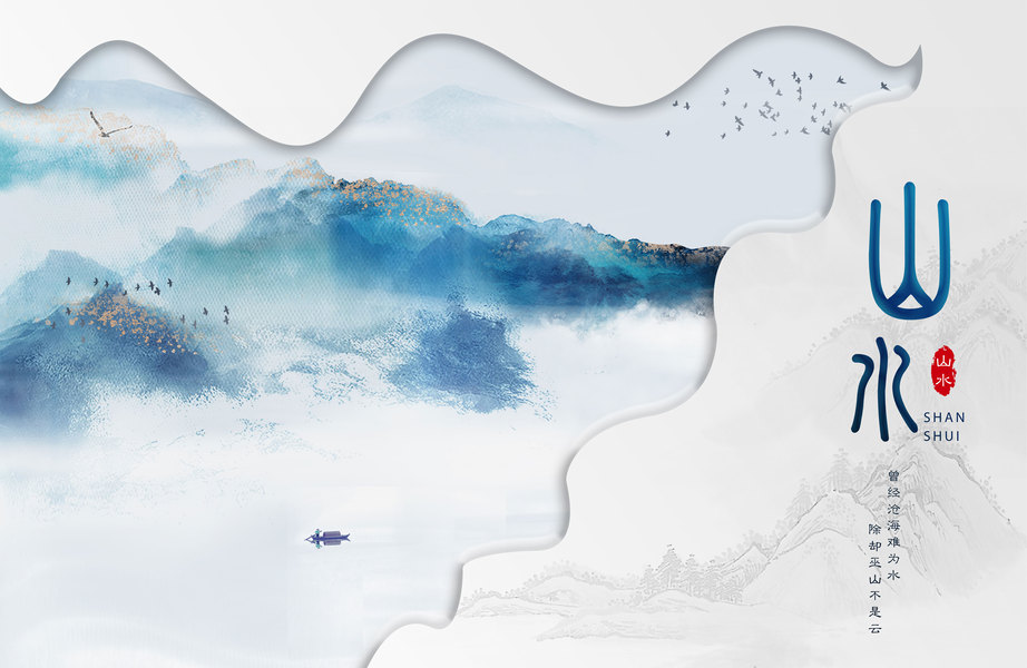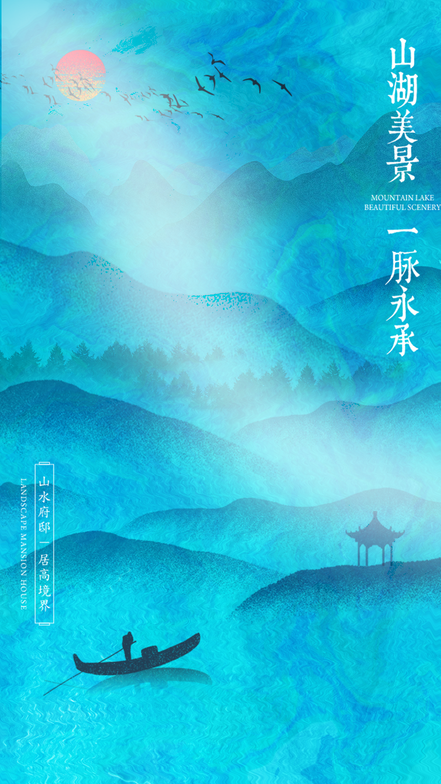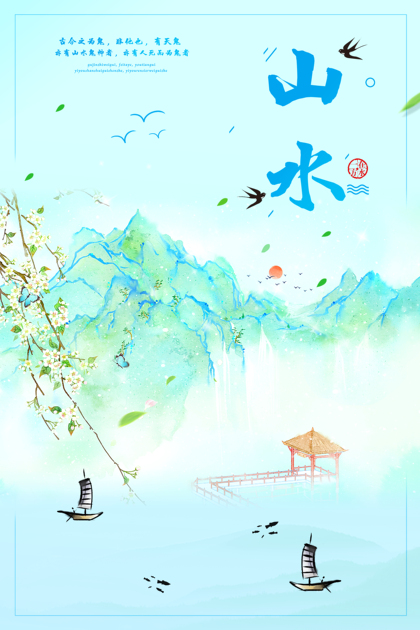 s彩墨山水画海报