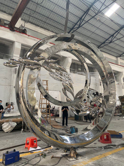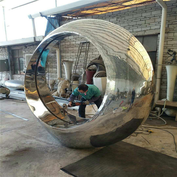 镜面不锈钢圆环雕塑、散发自由和灵动的气息点燃人好奇