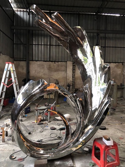 镜面不锈钢抽象雕塑给园林景观带来了不一样的视觉盛宴
