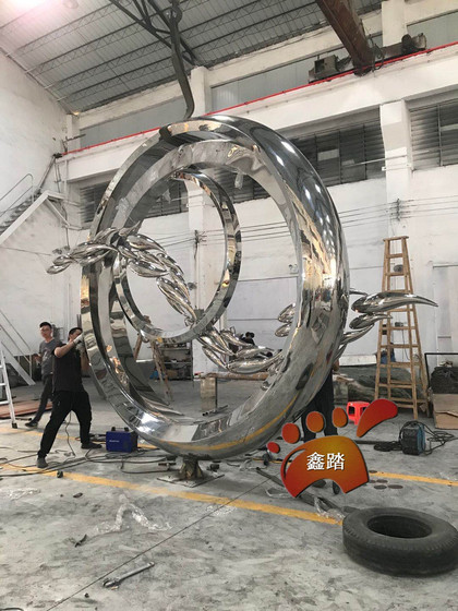 镜面不锈钢圆环雕塑、鱼跃龙门水景雕塑装饰事半功倍