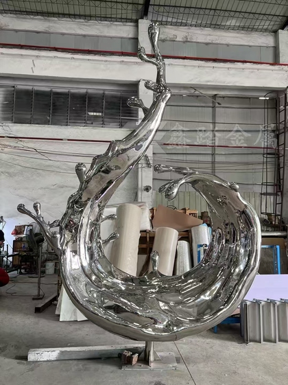 镜面不锈钢浪花雕塑酒店大堂水景雕塑小区入口景观雕塑
