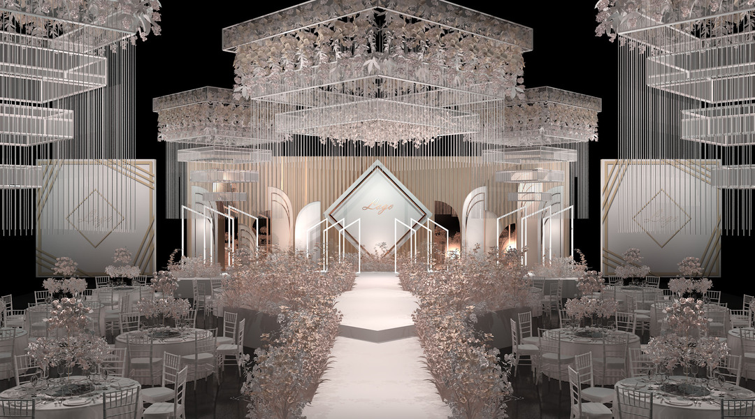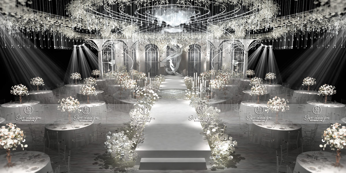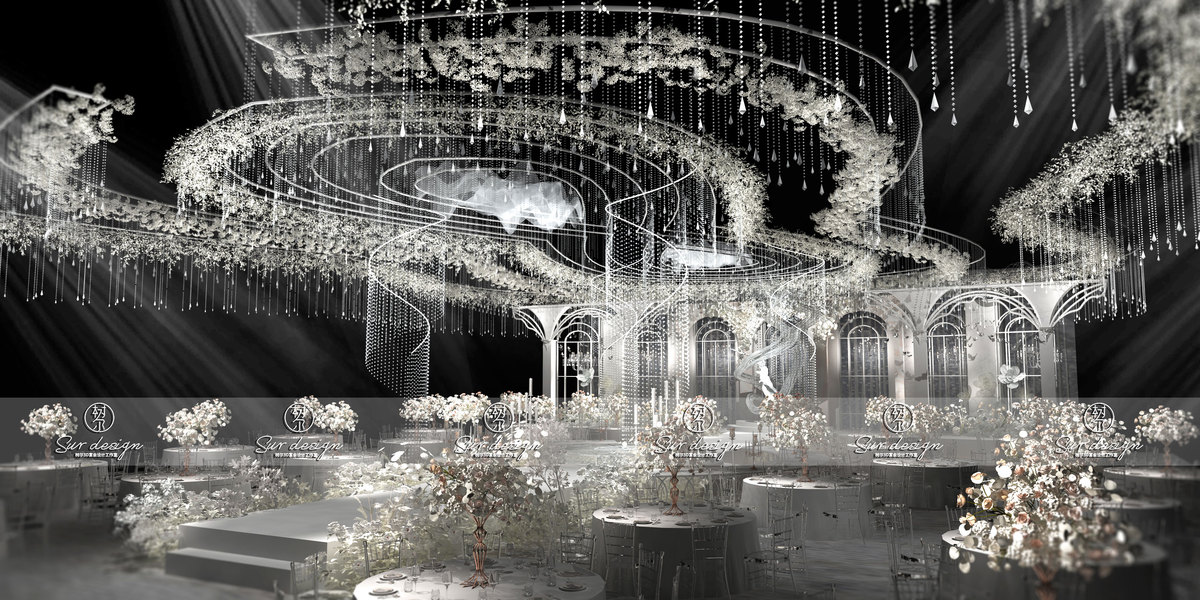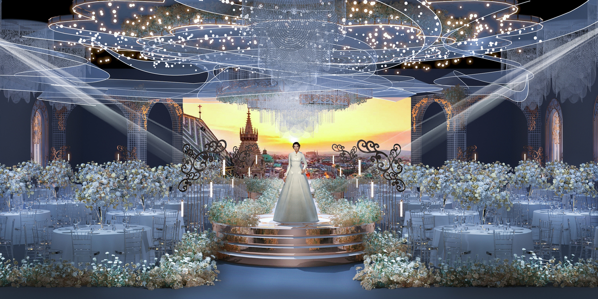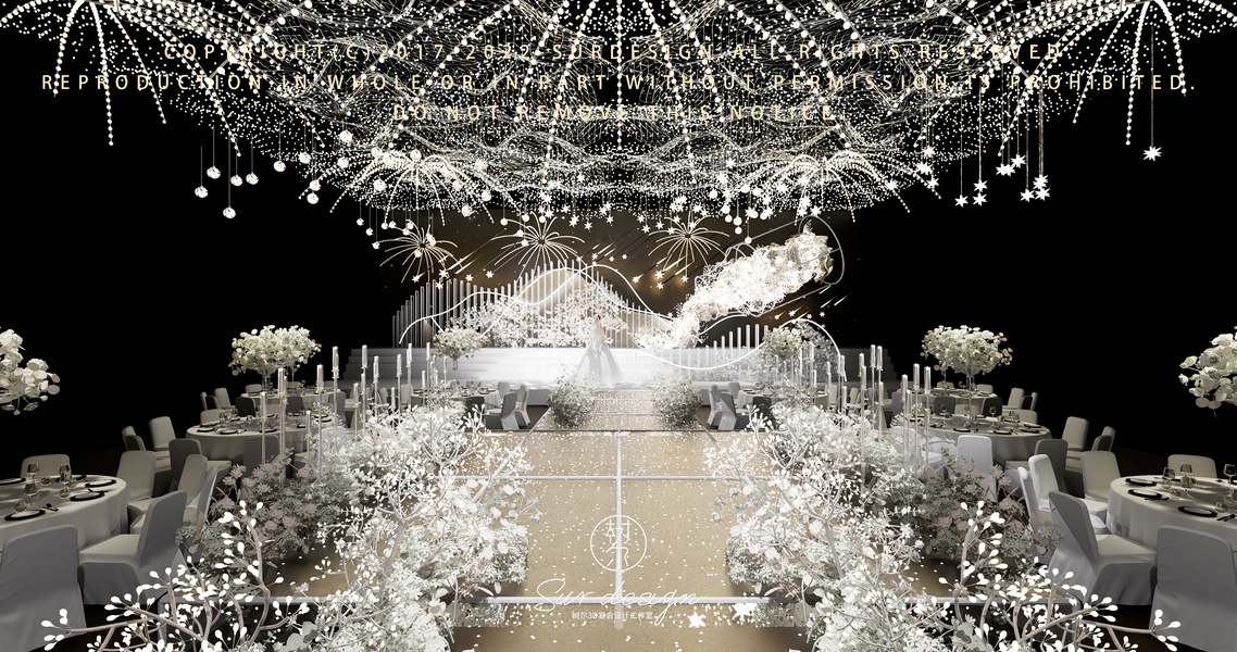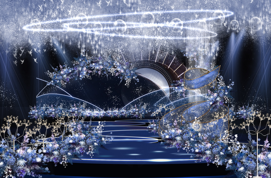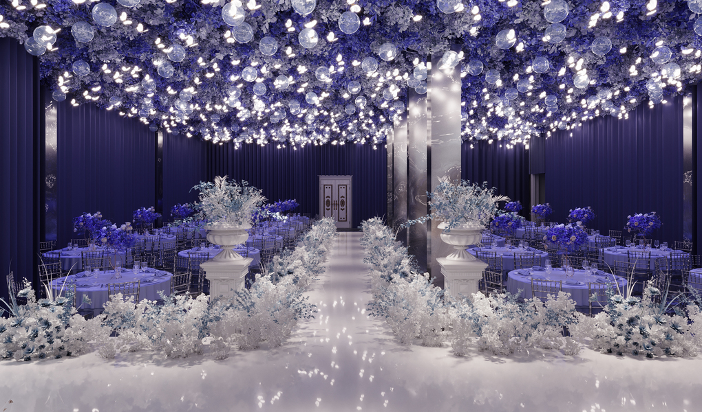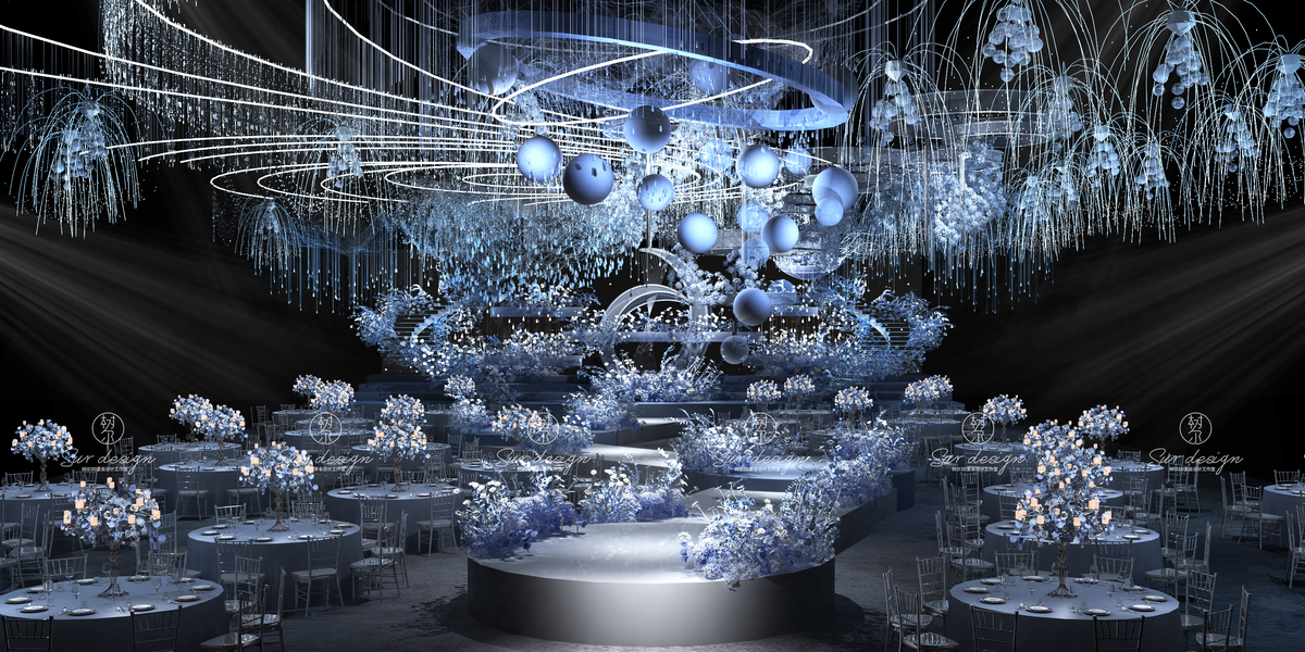 SurDesign蓝色系星空婚礼宴会3D效果图
