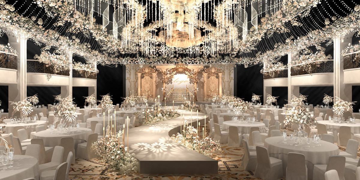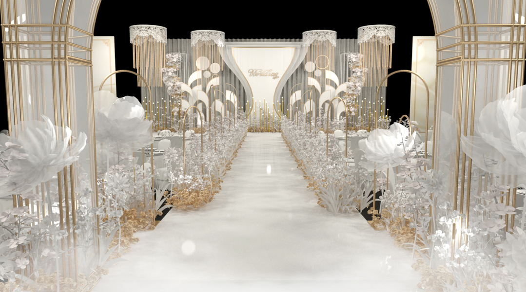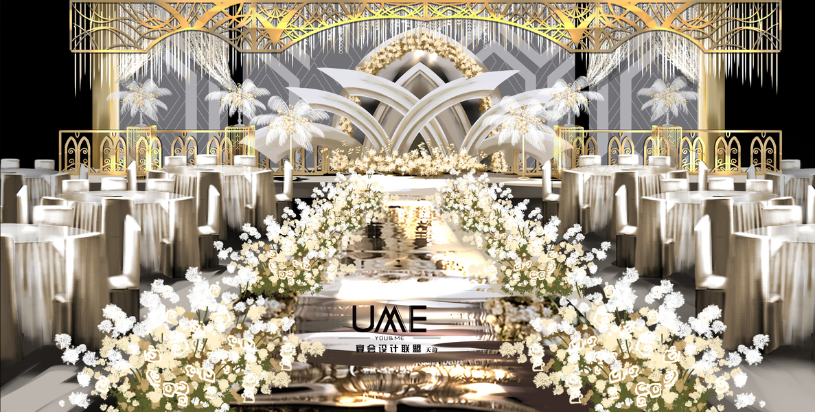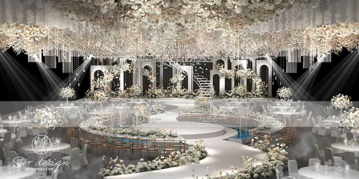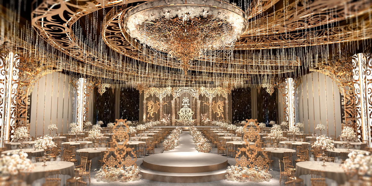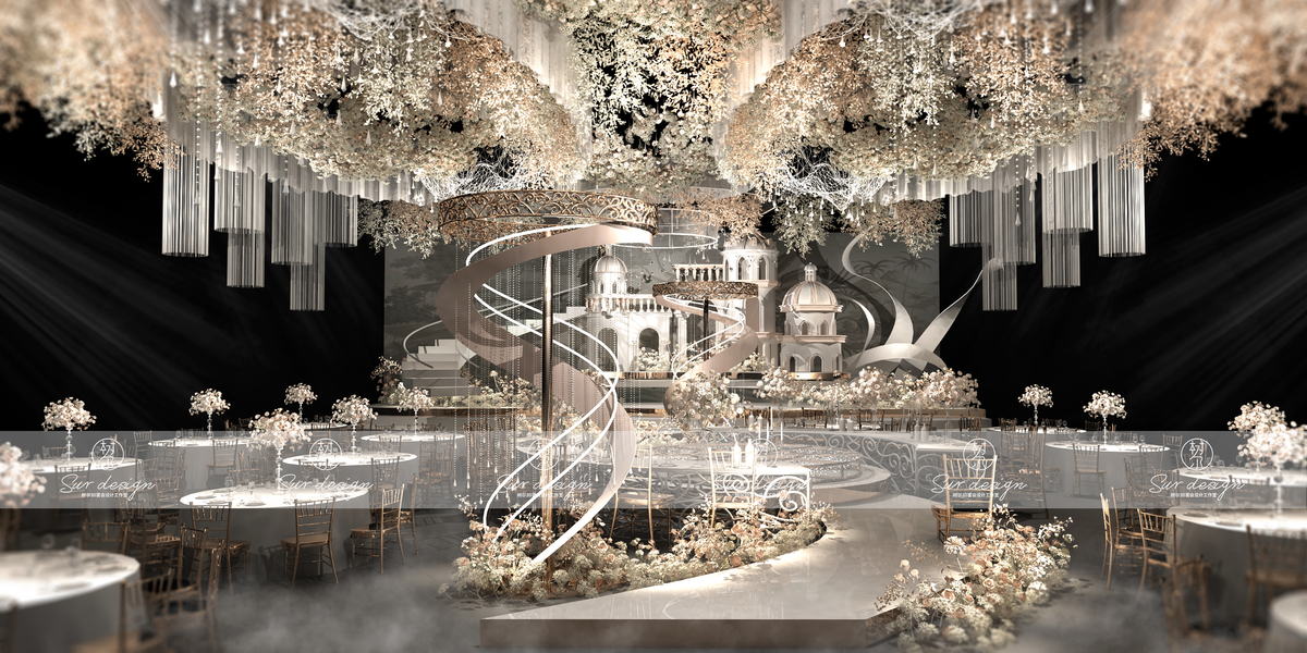SurDesign金色欧式婚礼堂宴会3D效果图