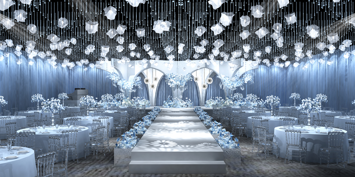 SurDesign蓝色系婚礼堂宴会3D效果图