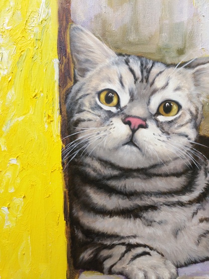 宠物画家刘诗洋油画作品《懒懒猫咪》