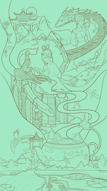 /敦煌九色鹿 飞天原创商业插画莫高窟