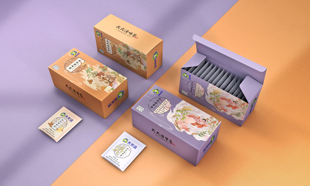 天天清X橘猫 国潮手绘草本茶包装设计第二弹